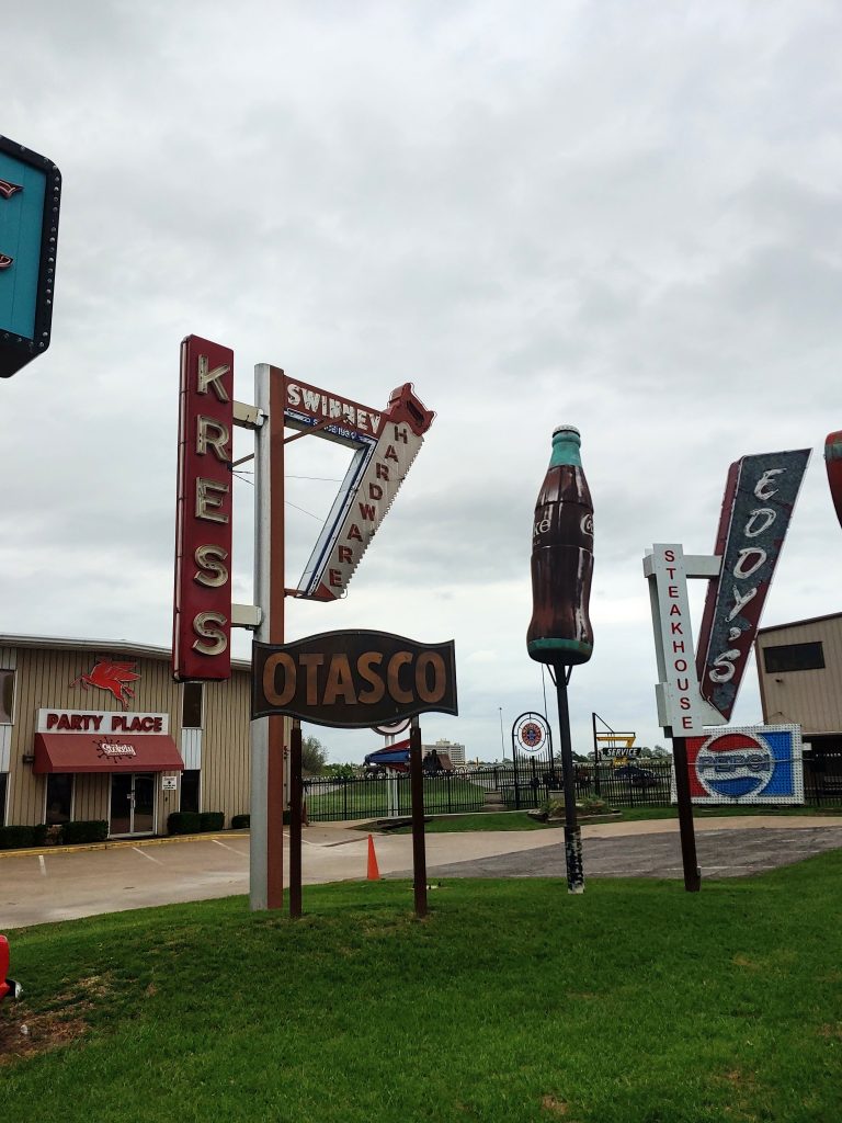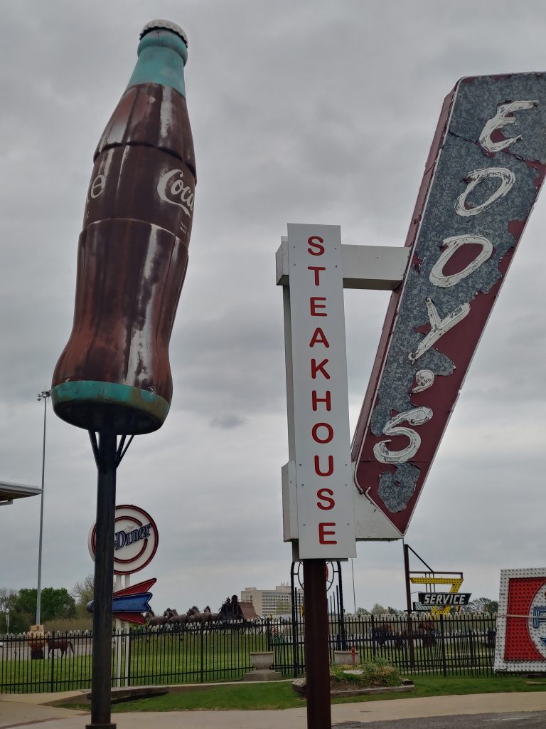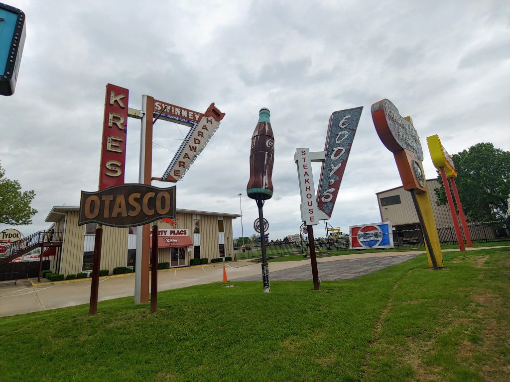 Returning back to our Airbnb after an adventure one day, we spotted some cool metal sculptures along the side of the freeway. While the giant buffalo sculptures were cool, what was even cooler was what we saw beyond the artwork… an explosion of vintage signs. We had to get closer!