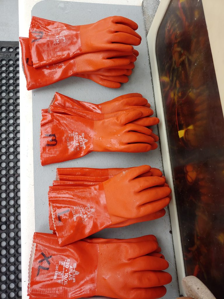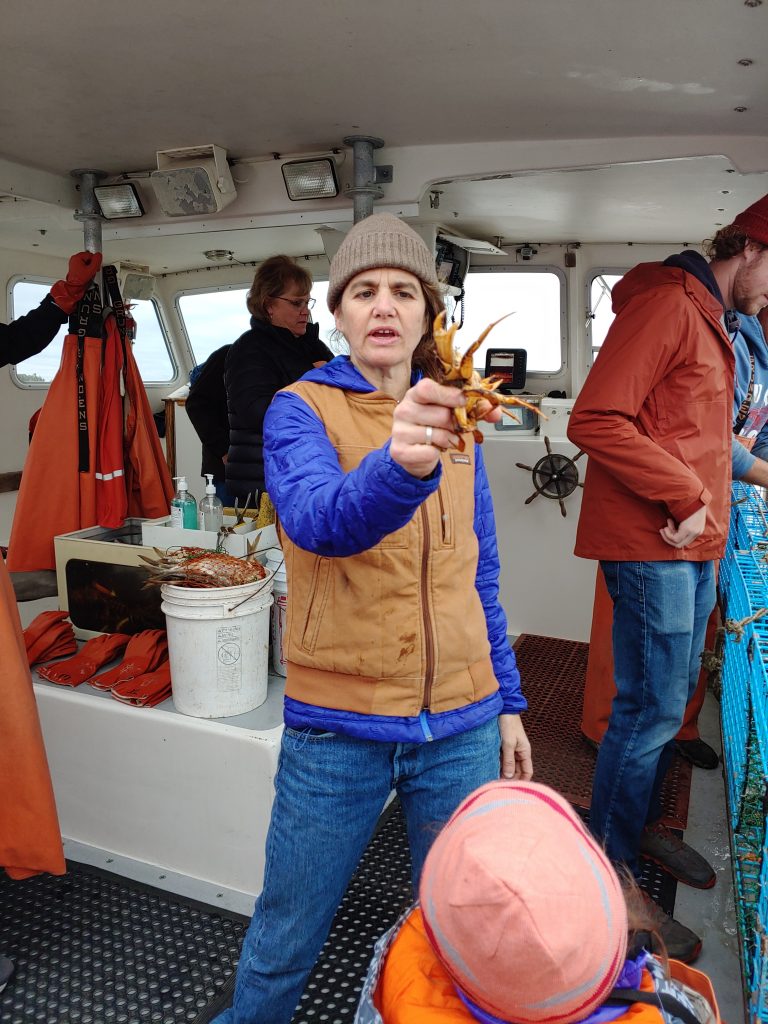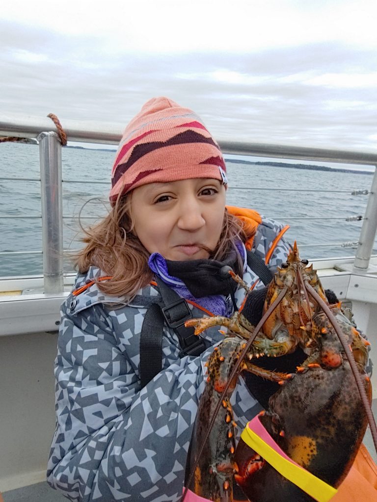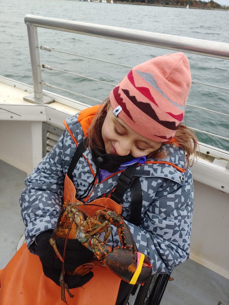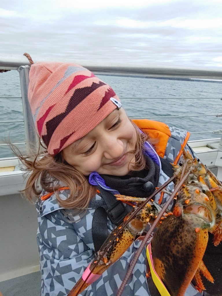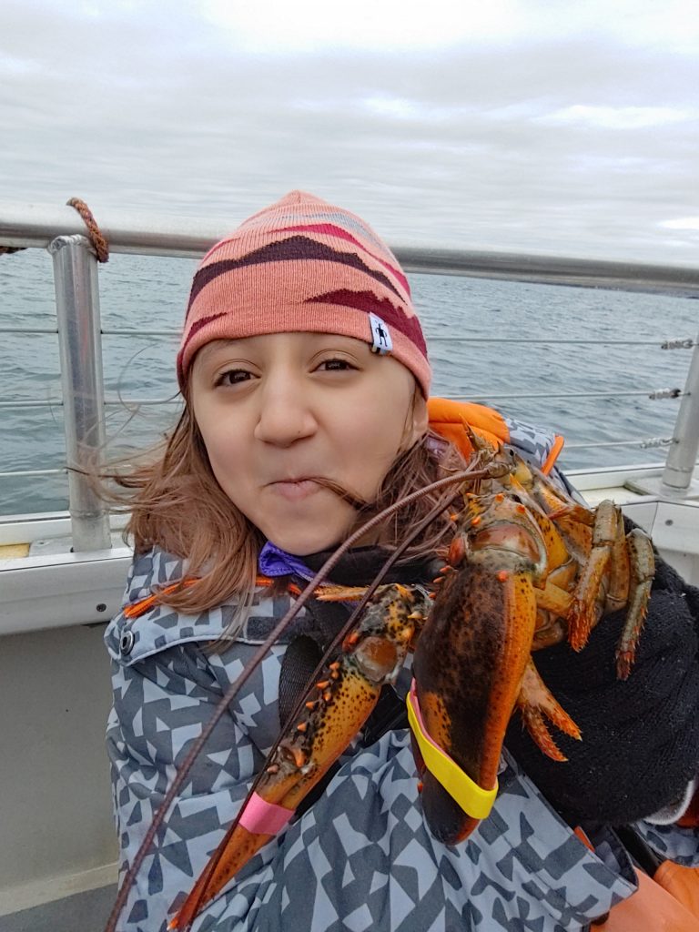 If a female lobster is caught with eggs, which look like tons of black dots on their belly, the lobstering crew will cut a notch into the left side of their “tail fan” before setting her free back in the water. Every female lobster that is caught has their tail checked before they are kept, making sure they haven’t been marked in the past. This means that the breeding females are protected for life, allowing them to keep having babies and maintain the lobster population!