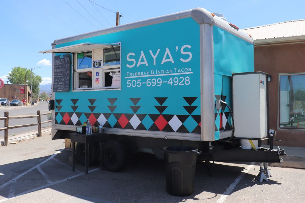 Santa Fe’s first Native American food truck, Saya’s Frybread and Indian Tacos is a real gem. It’s a family operation with limited hours, but it is worth scrambling to get there between 11 and 3, Tuesdays- Saturdays. Genuinely kind and welcoming, Saya’s is home to the first pre-cut Indian Taco. That is a fabulous concept for those eating in their cars and other situations without table access. They say they are serving indigenous eats and treats from the surrounding tribal lands.