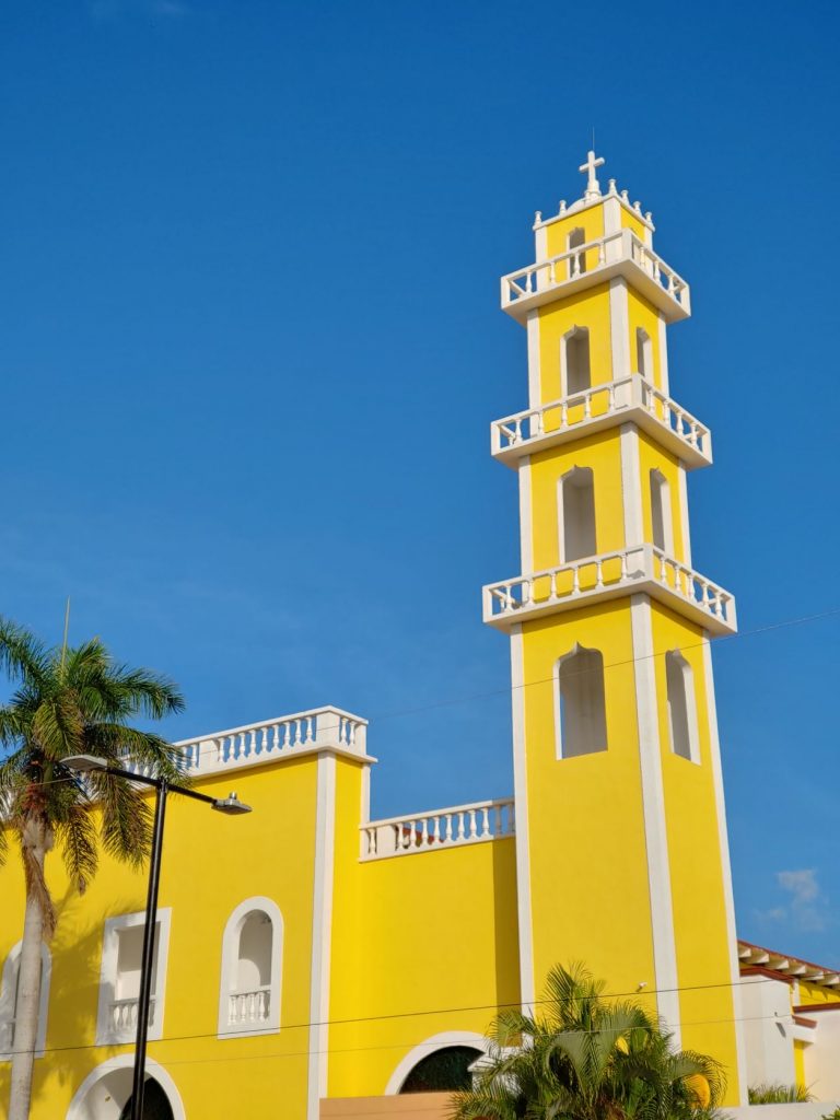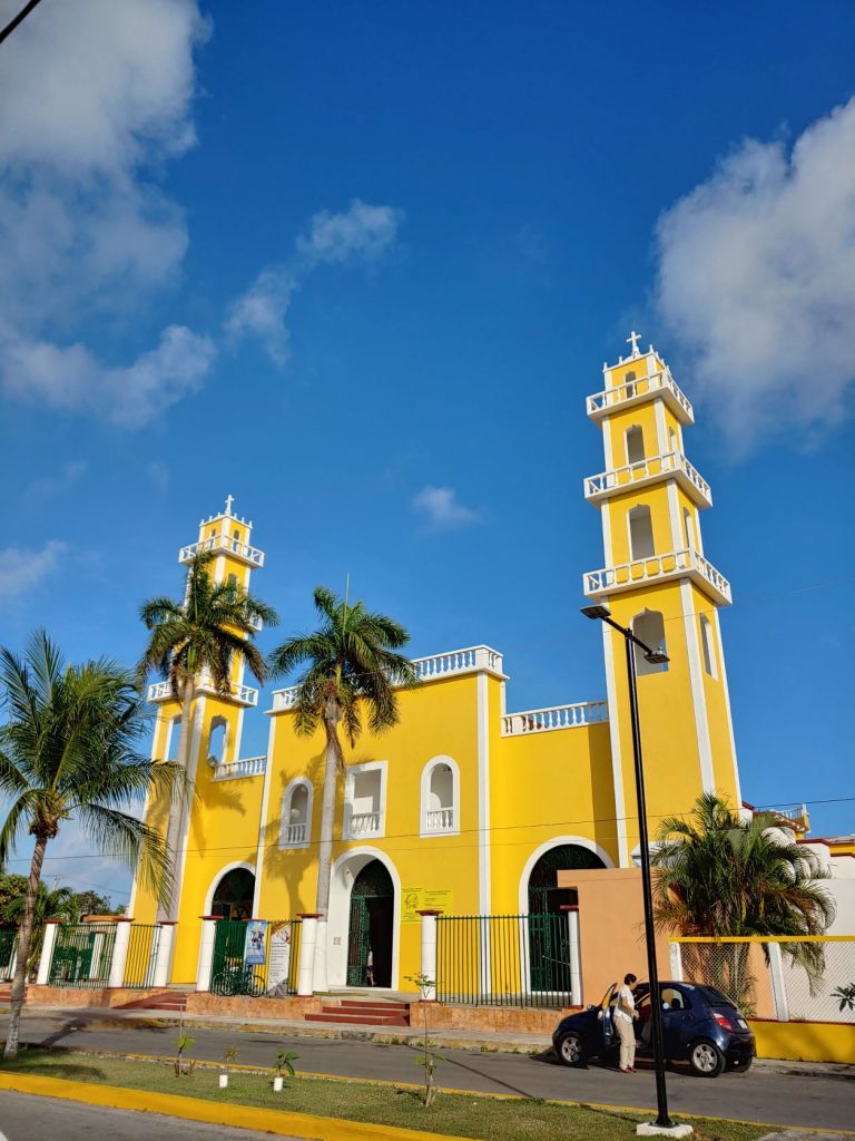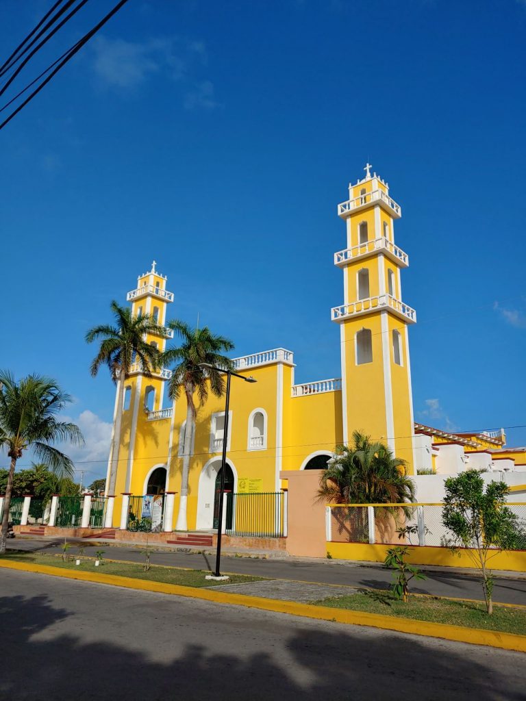Corpus Christi Cathedral is a large sunny yellow colonial-style Catholic church. It is considered an iconic landmark in the area, approximately one mile south of the town square or Parque Benito Juarez. The church is still a very active parish with daily services. The bells ring out daily to call the community to services each morning and evening. There are five services on Sundays including one for guests. For those who don’t understand the spoken Spanish service, the church has printed English programs.