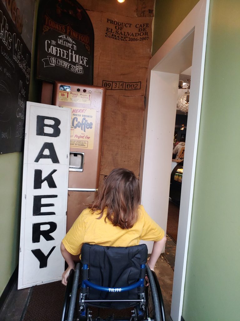 Just look for their side door with the ramp, it’s easy to spot if you look for their colorful mural along the wall. As soon as your roll inside you’ll be greeted by their friendly staff and their INCREDIBLE display of baked goods. We were all oohing and ahhing as soon as we saw it. Inside, the space was a little snug, like most good cozy coffee shops. They have a few tables that were easy to roll up to, as well as comfy couches if you’d rather transfer. Patio seating is available too, you’ll just need to go through the cafe to be on the right level. During busy times you might have to wait a bit for a table, but it’s worth it for the quality eats. Their restrooms are back down a hallway and were spacious enough for average-sized wheelchairs.