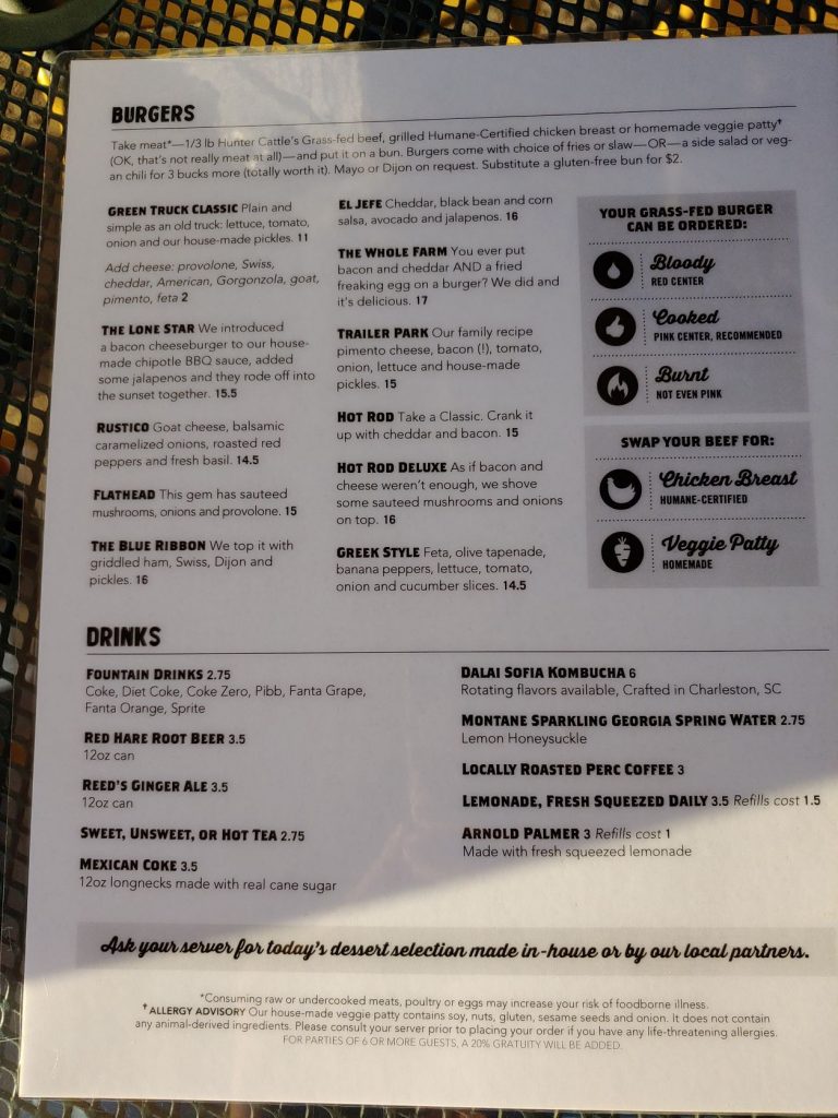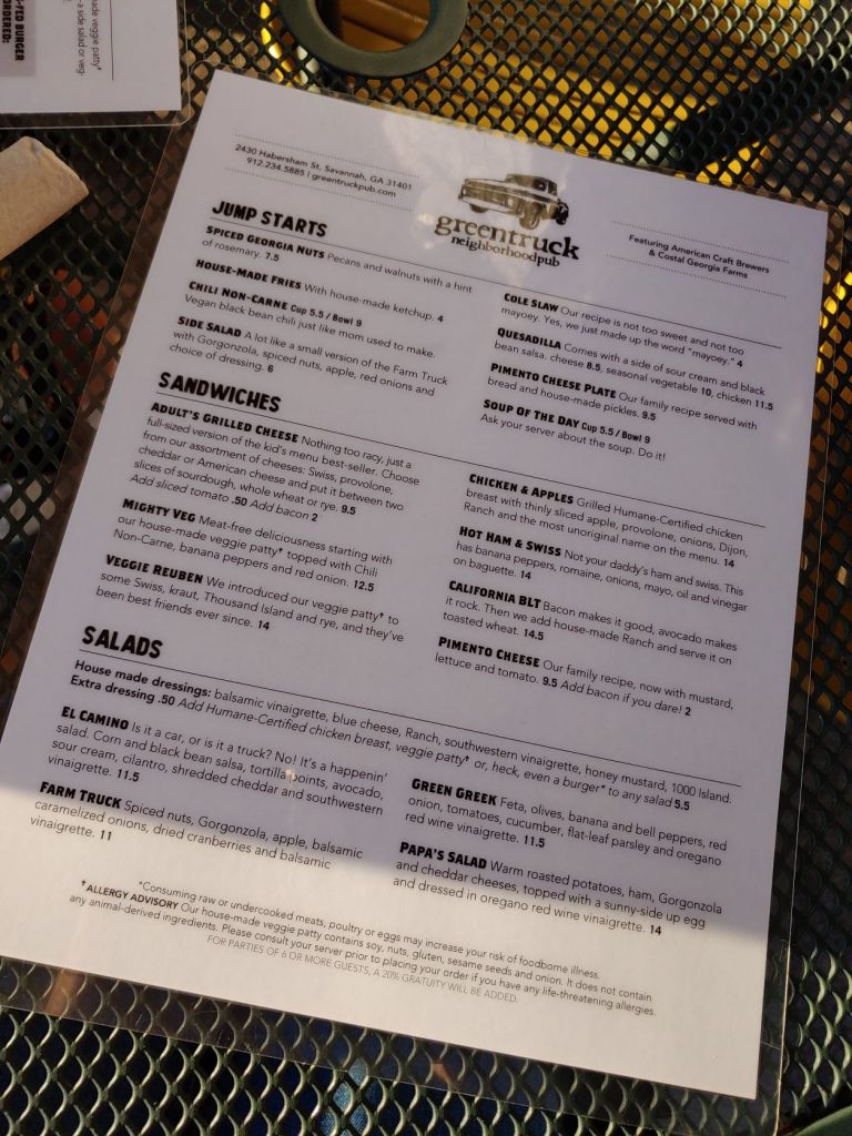 We were feeling a little discouraged the other day while on the hunt for a good burger in Savannah. So many places with only stairs to get in! Luckily we didn’t give up, and our search led us to the Green Truck Pub.
