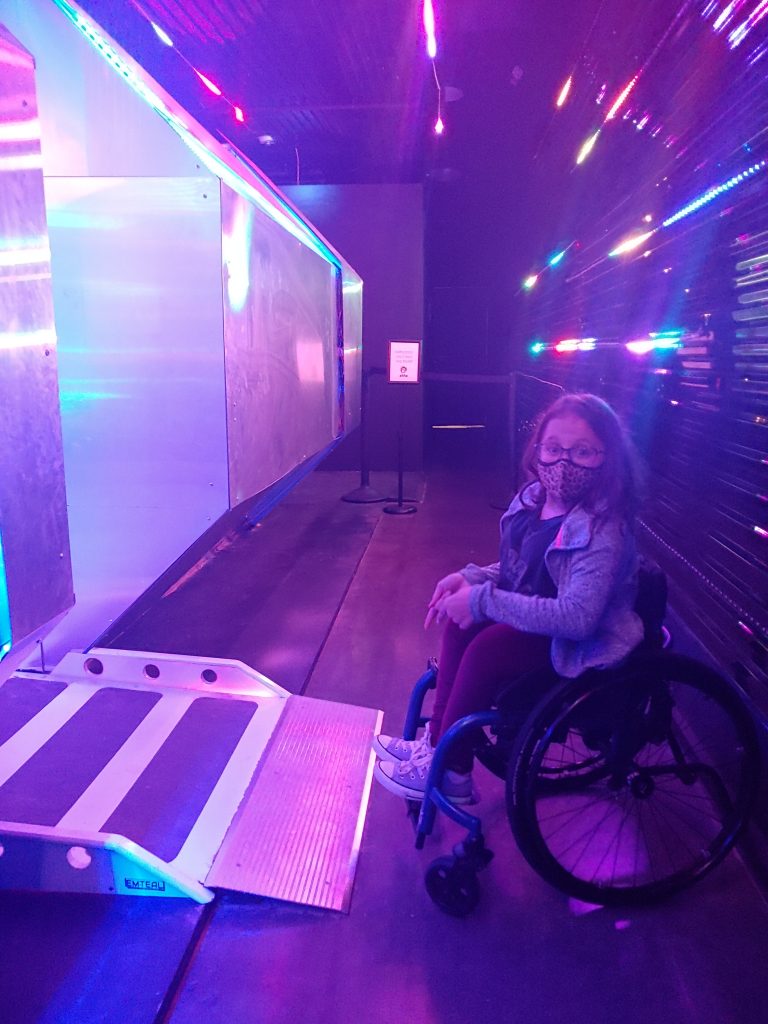 “Into The Wormhole” was another part of the exhibit with a space vibe. I loved the interactive musical element, and the fact that the entire spaceship pod had a ramp to make it easy to access.