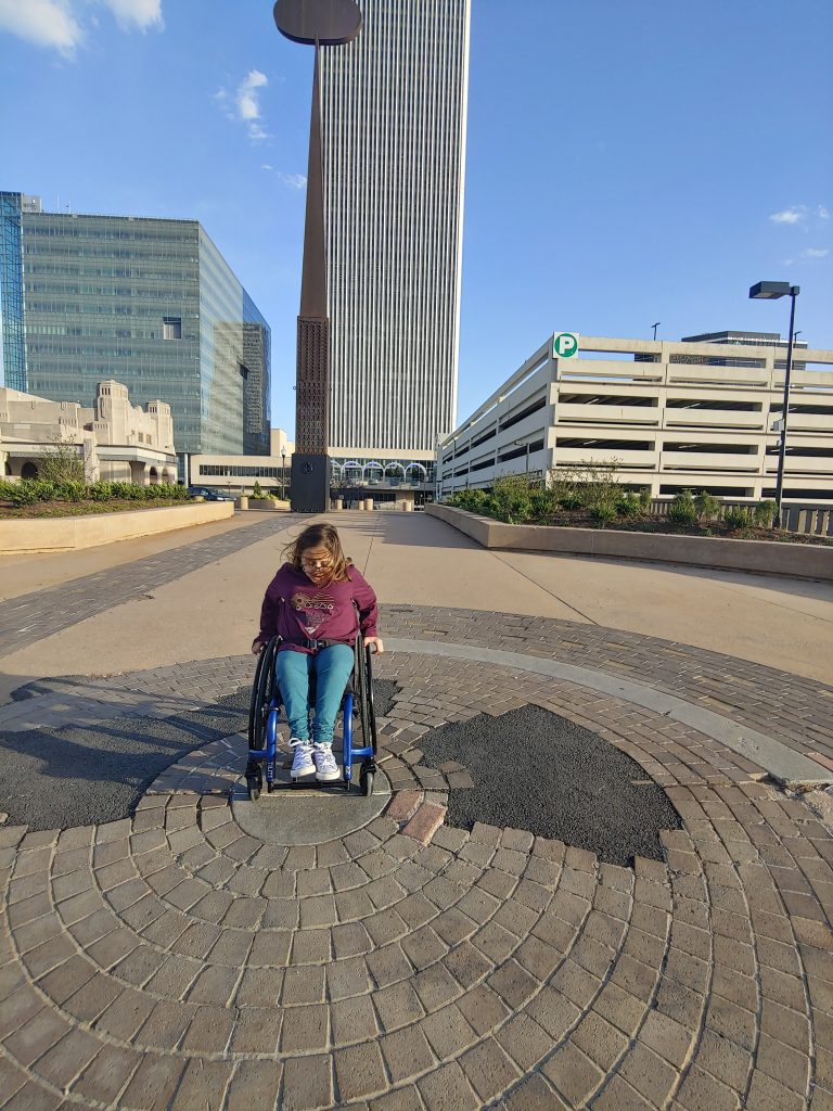Ok, folks, I’m a little embarrassed to admit how long it took us to find this must-see site in Tulsa. We had heard about this mysterious site near the Arts District… the “Center of the Universe” and the “Artificial Cloud”. Despite following our GPS, which turned out to be absolutely correct, we kept missing this giant sculpture!