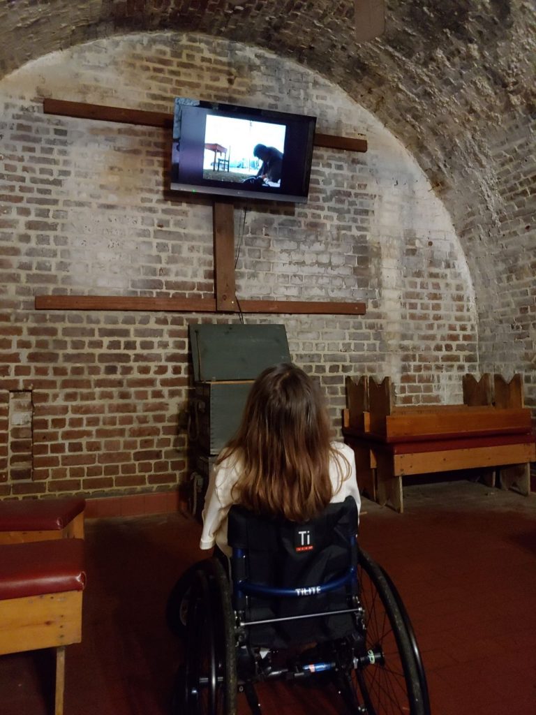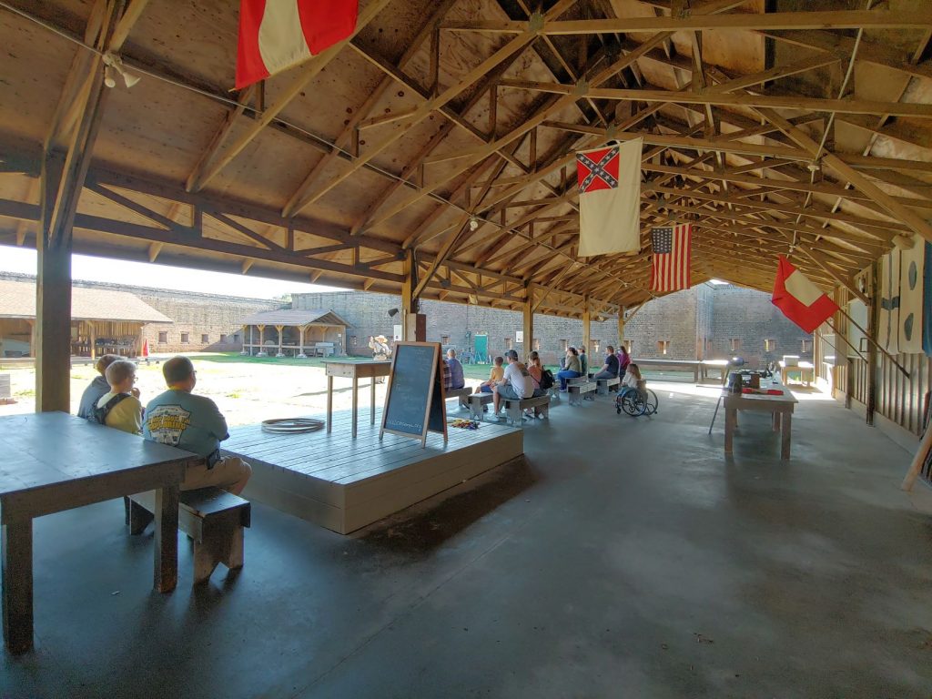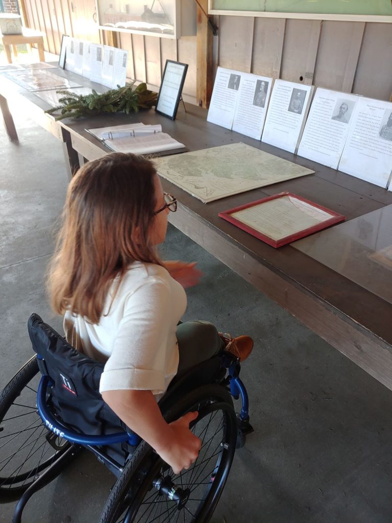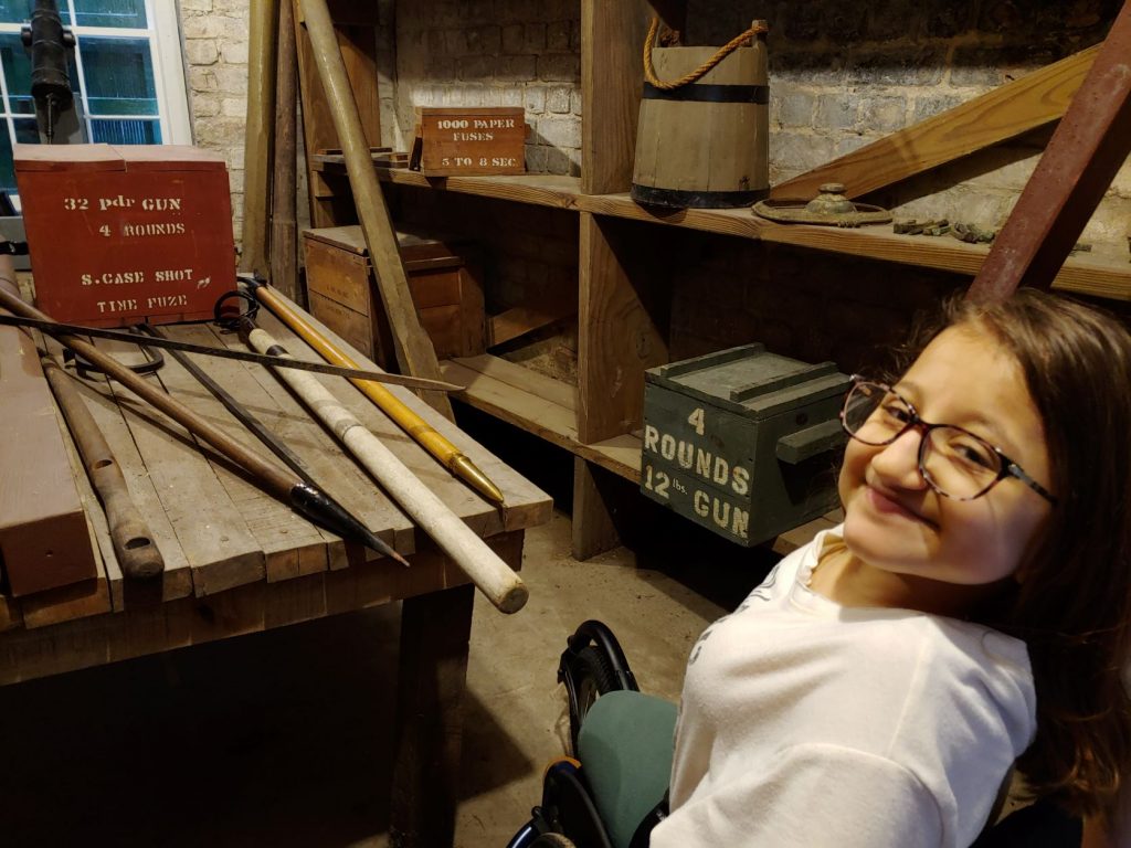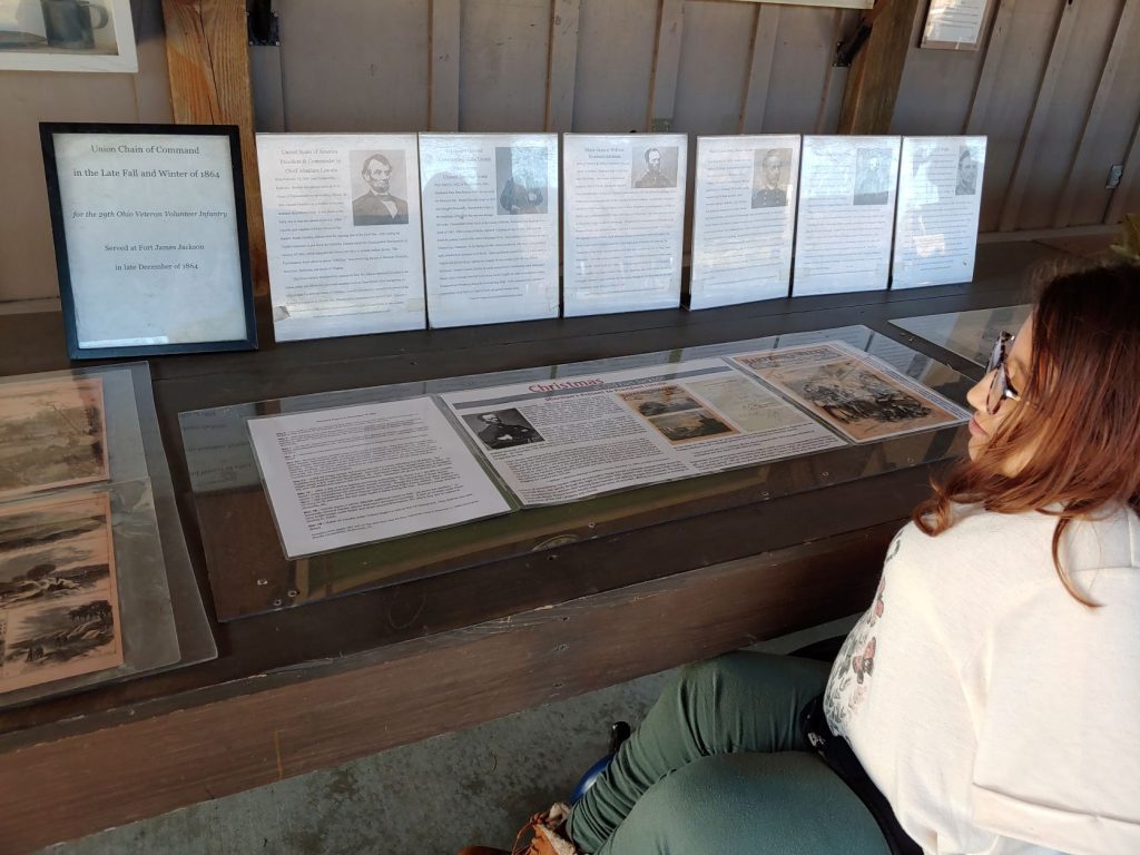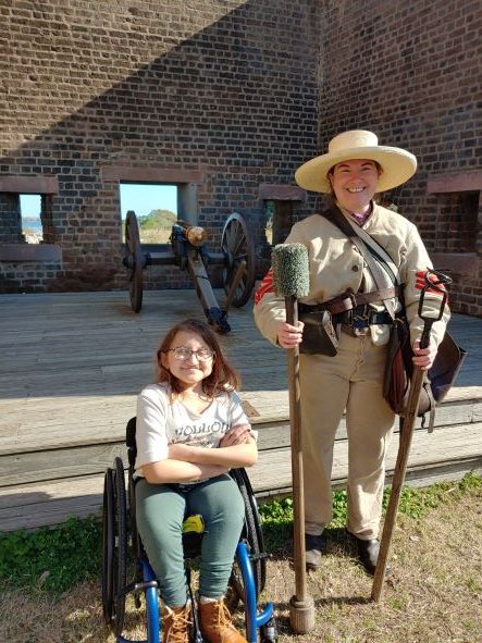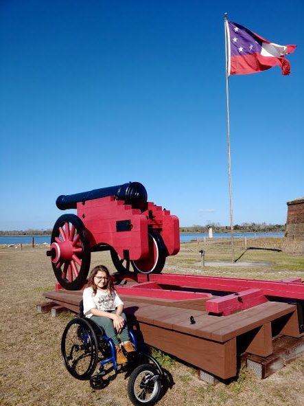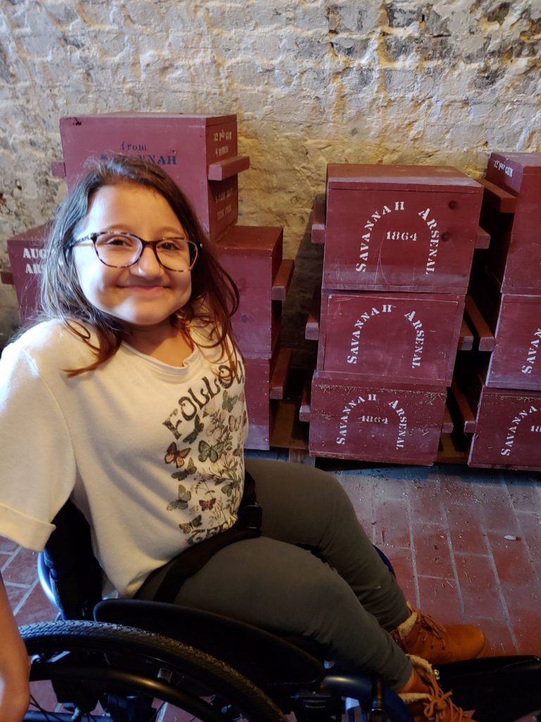 For an old fort, we were happy with how accessible Old Fort Jackson was. I used my freewheel and was able to navigate the large grassy areas, while the interior parts of the fort were easy enough to handle with my regular wheels. The only tricky part was parking, as most visitors go through the tiny Visitor Center. While the center has a steep wooden ramp on the front, the exit and path that follow are not designed for mobility. Instead, those who need to, are instructed to drive down to the end of the parking lot and cross to the fort along an access road. For a historic site, we were happy with what I could explore. There were only two parts I couldn’t access, the upper bunker level walkway and one demonstration area that has benches too close together to navigate between. I highly suggest asking lots of questions, the guide who was there for us knew so much about the history of the fort. There was a lot to learn!