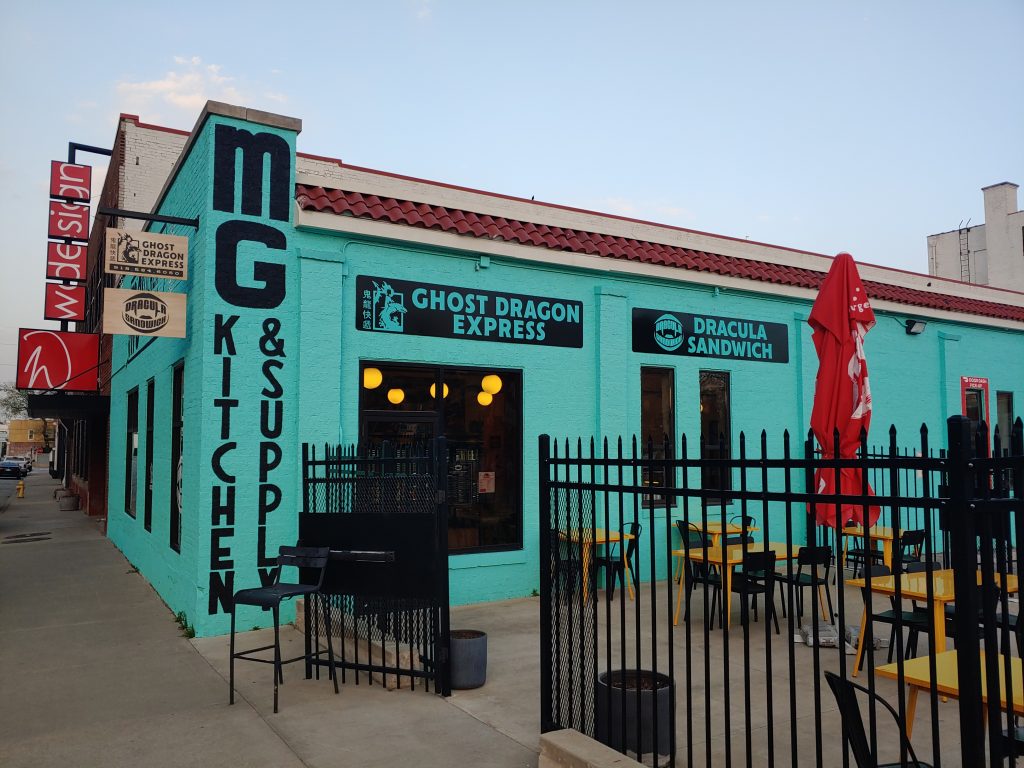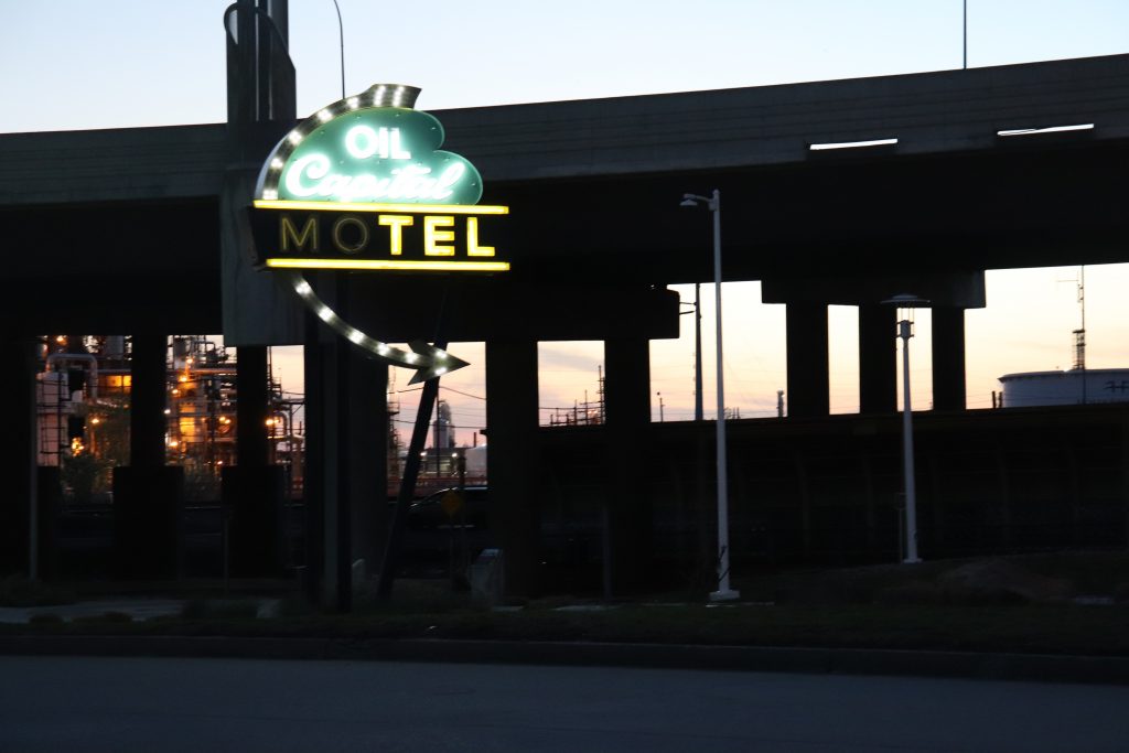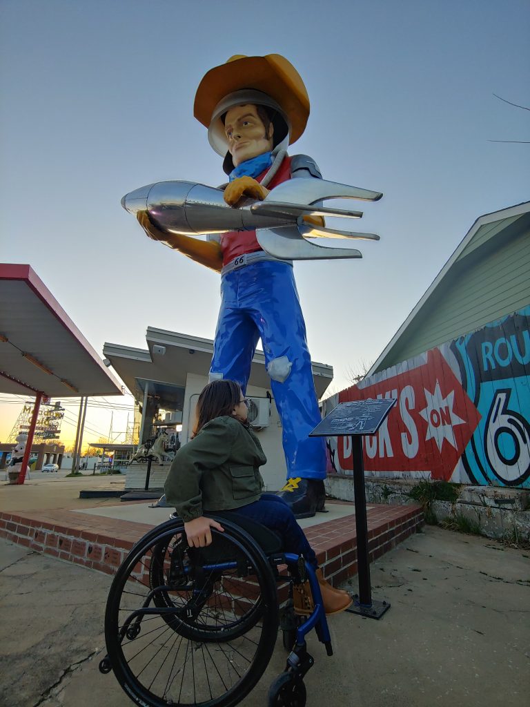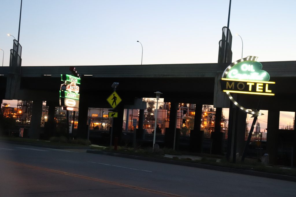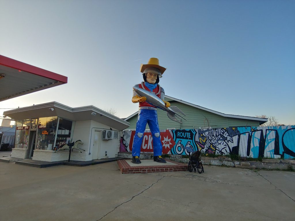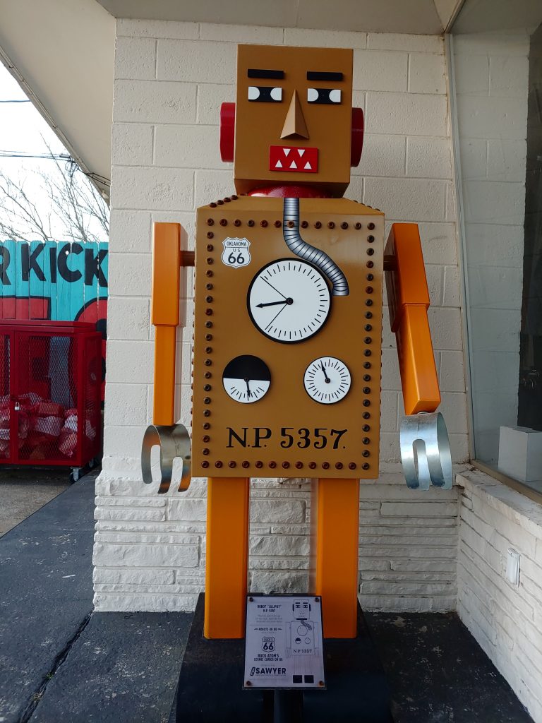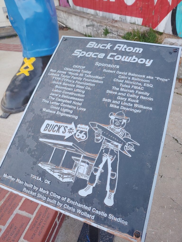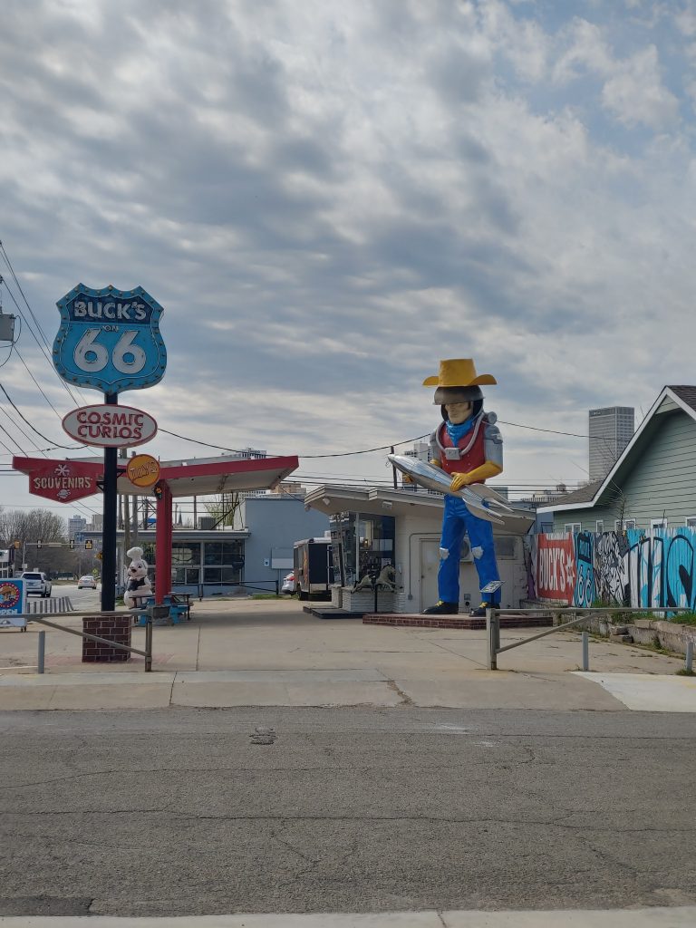 Neon Tulsa. I saw examples nearly everywhere, but no better place to head than to historic Route 66. I spent quite a bit of time enjoying bits of Tulsa’s past. Whether interesting storefronts, “muffler men” or actual neon signs. They even have a small park dedicated to replicas of 3 iconic pieces, each once an actual business. Muffler men were tall fiberglass advertising sculptures, some as tall as 25 ft. You can’t miss seeing the one in front of Buck Atom’s Cosmic Curios. Buck is a newer version that was modeled from bits and pieces of an old muffler man, then brought to life as a newly created space cowboy version.