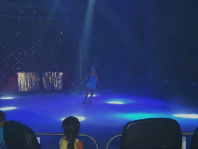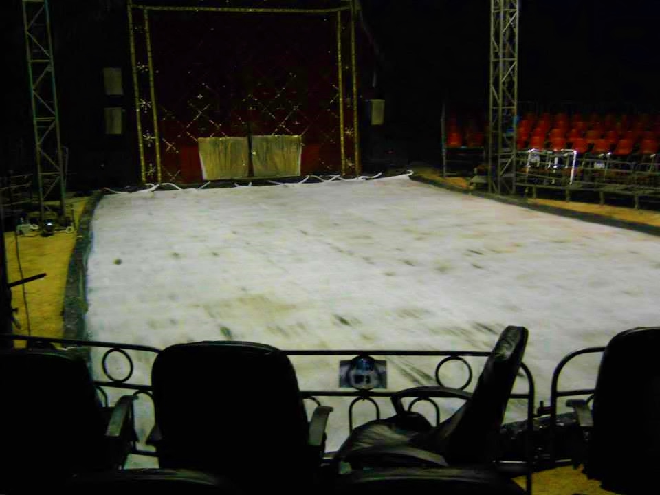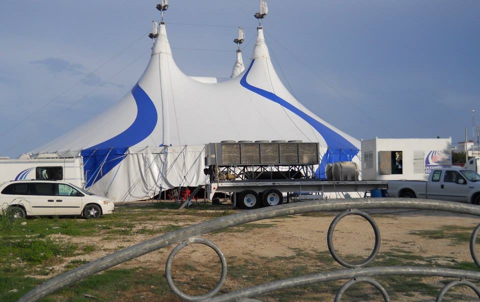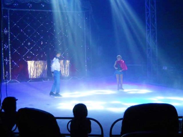 After having dinner with Carlota and her family, we headed back to enjoy the show. We had our pick of some really great seats and once the show started we were able to move the girls even closer. The set-up was similar to that of a small traveling circus. Only with a temporary skating rink set up in the middle. We’re not sure how they managed to keep it frozen because it was HOT inside the tent. On closer inspection, it appears that the rink is assembled by adding water over the top of ice cubes and several giant air conditioning units running at full blast. If you’ve ever ice skated on a pond, in the Mexican heat, then you understand the talent these skaters had to stay on their feet.