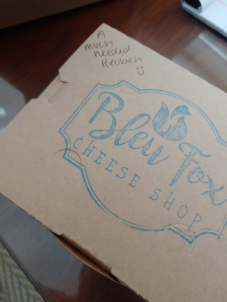 My personal favorite is the ooey, gooey, stretchy, melty, fun grilled cheese. There are a couple of tables out front, and a few towards the back of the shop. Even a small kids space in the back near the tables. I loved everything about this place, especially the friendly service. You can dine in, or take food to go. You can even call ahead to place your order from their regular menu, or we saw some of their beautiful cheese trays waiting for pickup that would be perfect to have for a night in at your Airbnb. Funny story, one day we were having a FOOD EMERGENCY, and called to place an order for a “desperately needed ruben”. They had our order ready quickly, and swipe right to see the cute note on our to-go box.