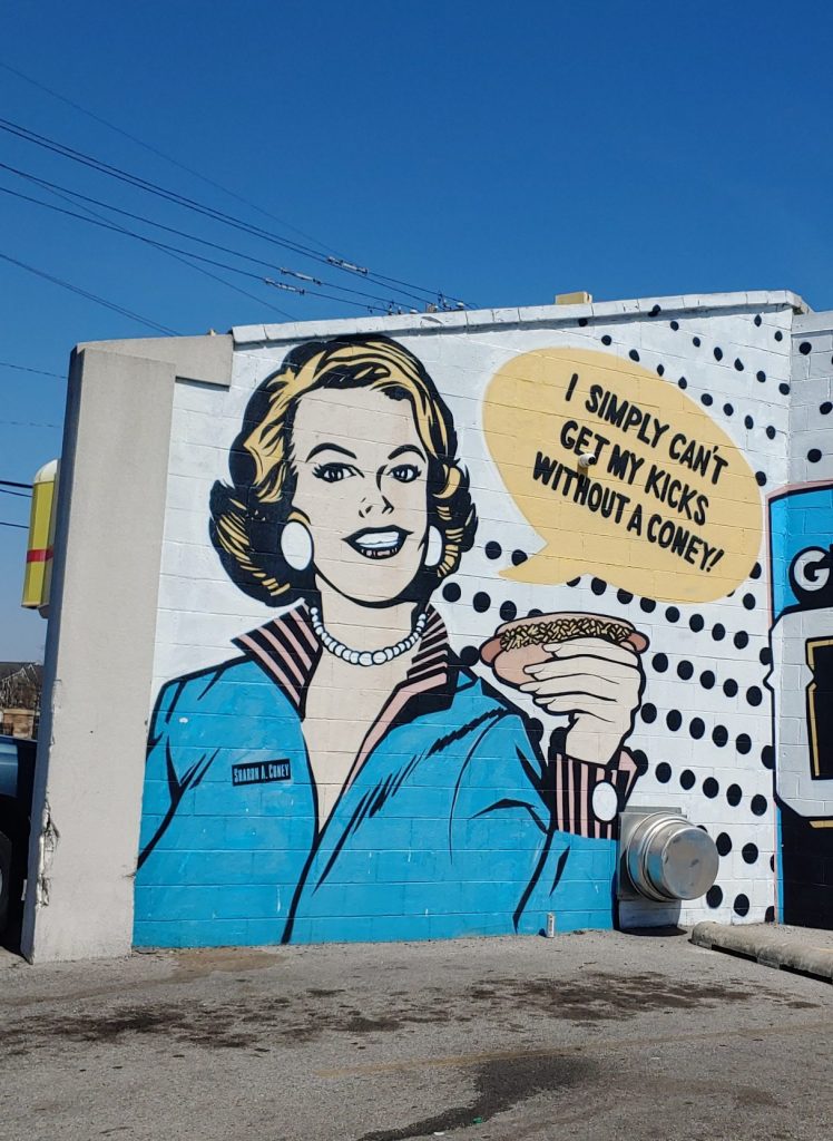 Getting hungry, yet don’t want to stop enjoying the Route 66 vibe? Coney I-Lander is where you want to be! It’s a fun retro building filled with vintage-style art. If you’re too hungry to think, don’t worry! There’s a simple menu, with no complex decisions.