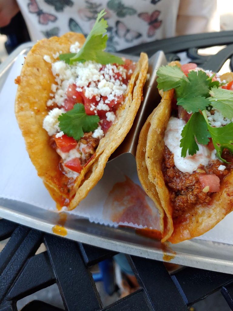 We ate at the tables out front but they also have indoor seating and a back yard courtyard. I was worried the courtyard wouldn’t be accessible, but our waitress explained we could easily access it from the side street. They have special s’mores nights in the courtyard, so we hope to get back. Inside they have clever art and t-shirts for sale. We scoped out the bathroom too, and the closest one to the front of the building totally worked for my chair.