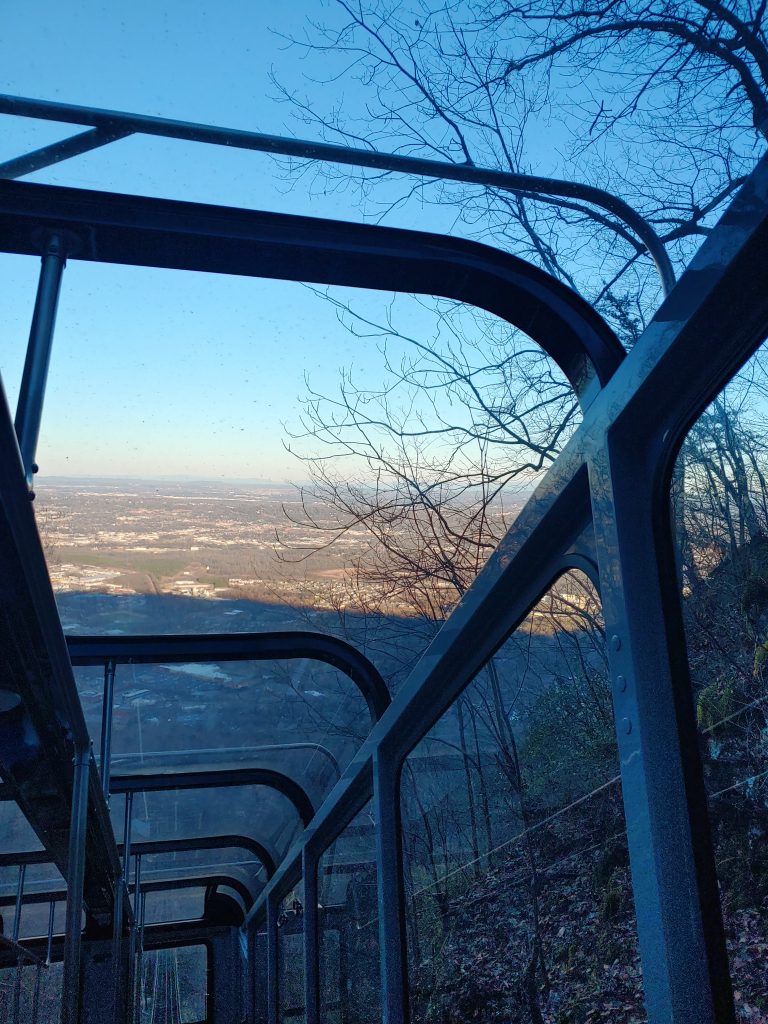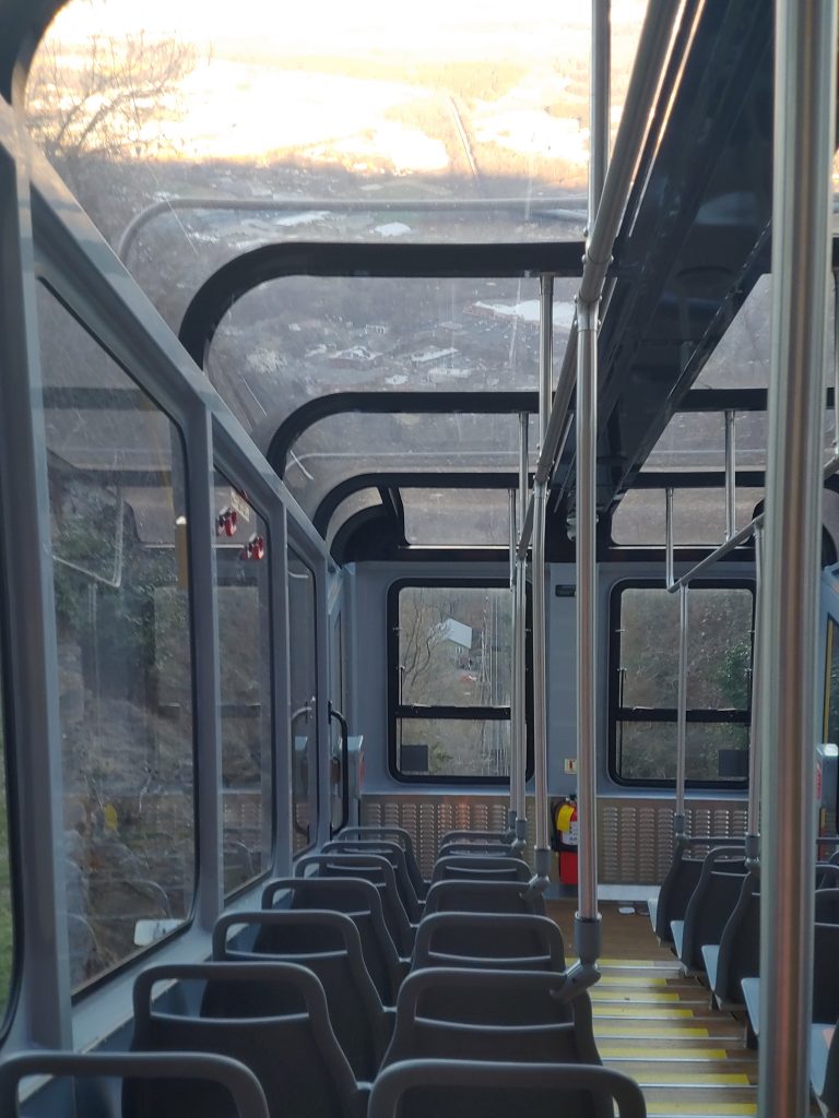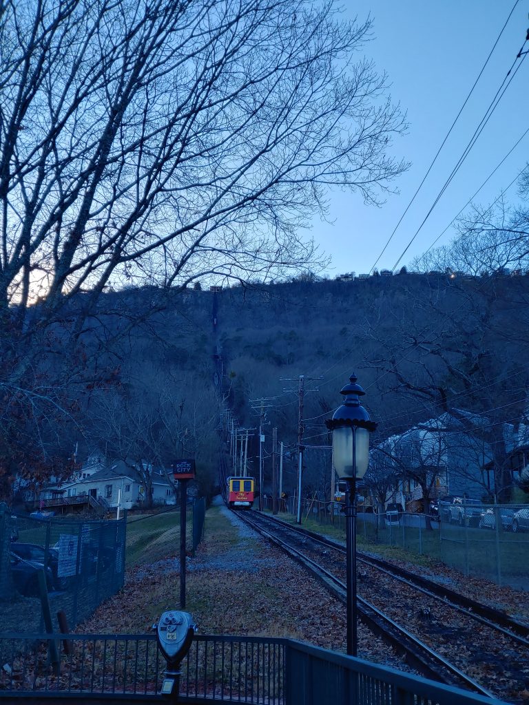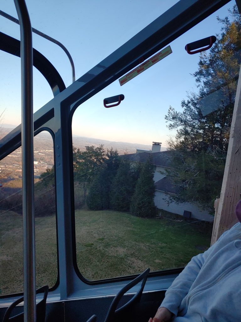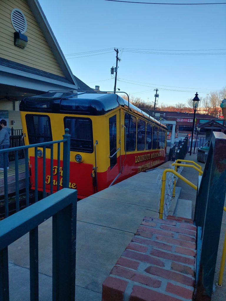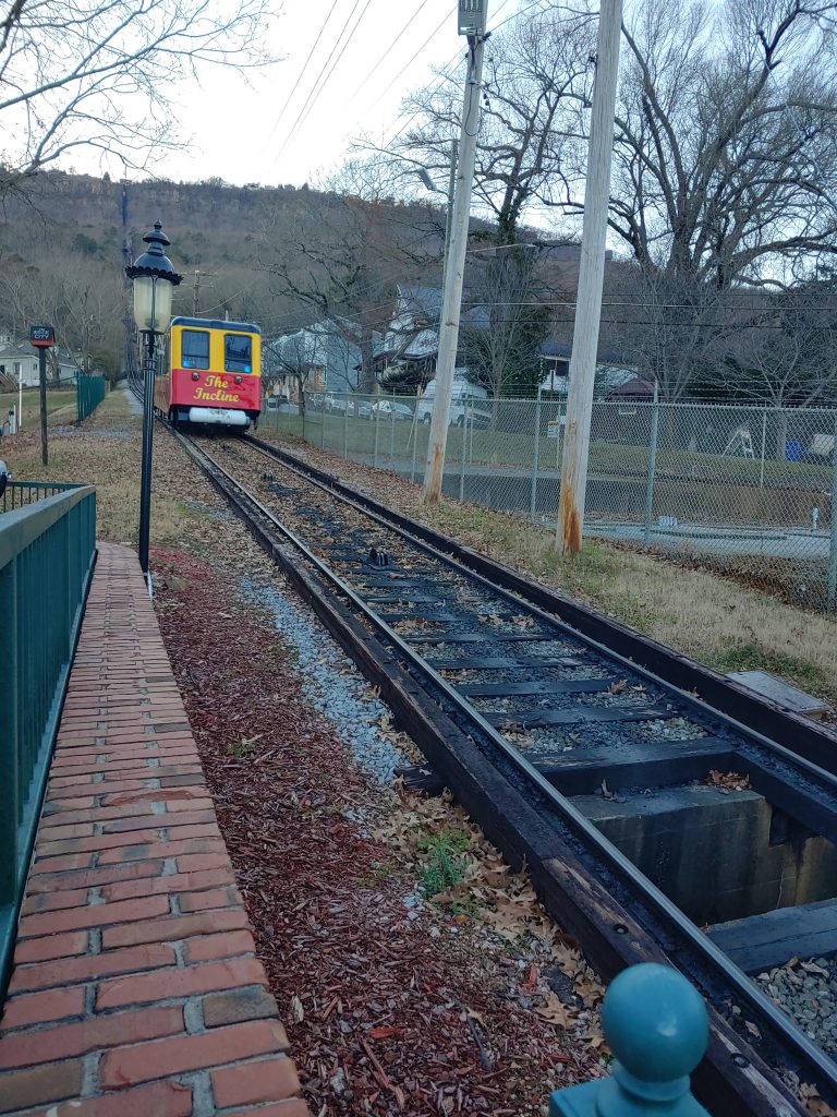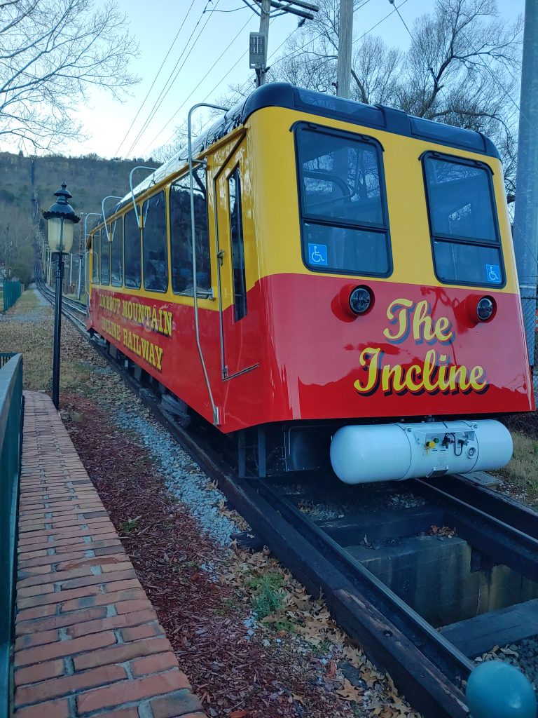 The Incline Railway at Lookout Mountain was my second experience riding a funicular railway. This one was much longer and had two railway cars counterbalancing one another. They cross paths only briefly at the midway point! A funicular is used for transport up very steep inclines. This one is over 125 years old and uses a cable system to slowly pull one car up, while gently lowering the other down.