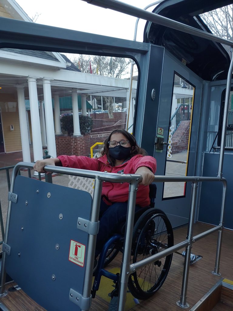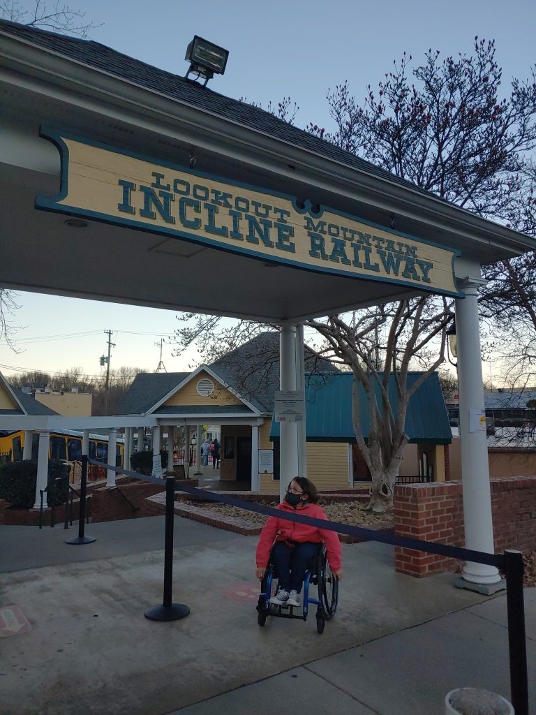 They have disability placard parking spaces and smooth ramps, making it easy to access the railway. Only one of the cars is wheelchair accessible, so you may have a short wait before you can ride. But it is fun to watch them in operation while you wait. To board the railway, they have a special ramp they put into place, and you board the car from the opposite side of the track as the other guests. They will then tether your chair into position using the transit locks on your chair, just like public buses do. Then you are off on an adventure you will absolutely remember!