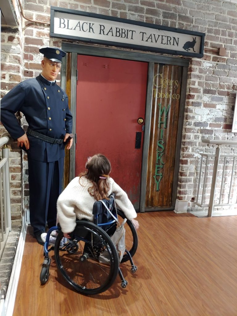 The space is totally accessible, and the staff is the cat’s pajamas. Outside there was a large ramp, and inside the space, they had an elevator that easily took you between the floors. Once they heard how much I enjoy taking my time in museums, I was tickled pink that they let me go back through again after the tour. Tour tickets included a cocktail or mocktail in the speakeasy, which was a fun way to wrap up our adventure!