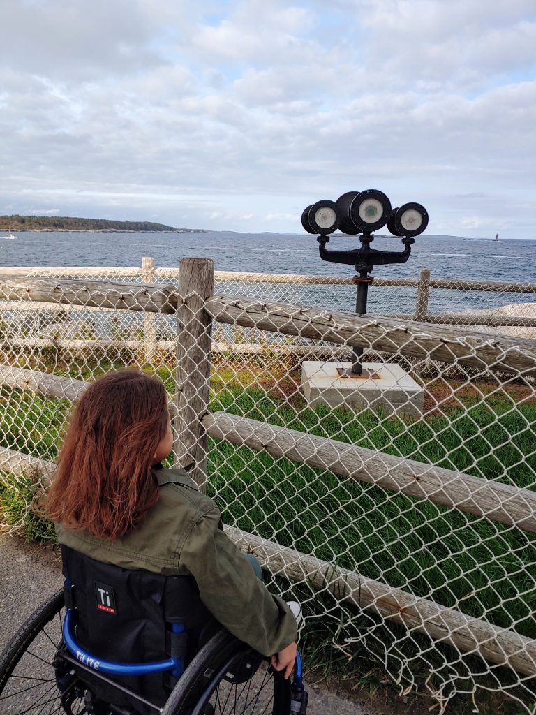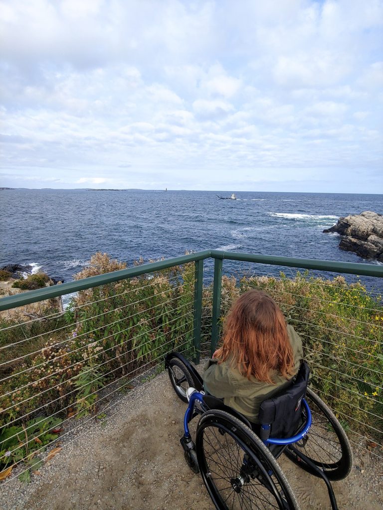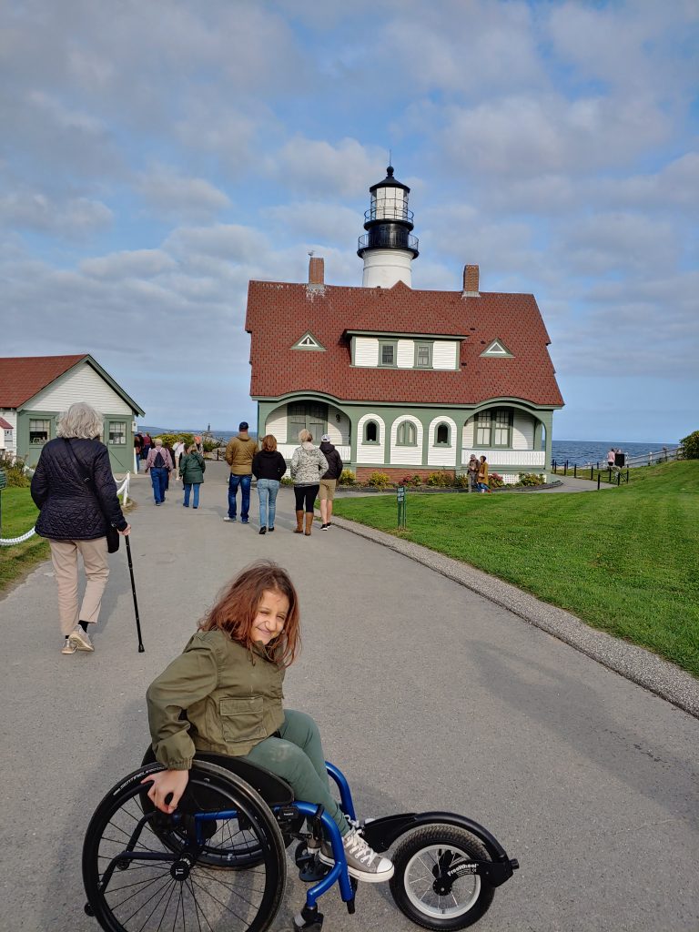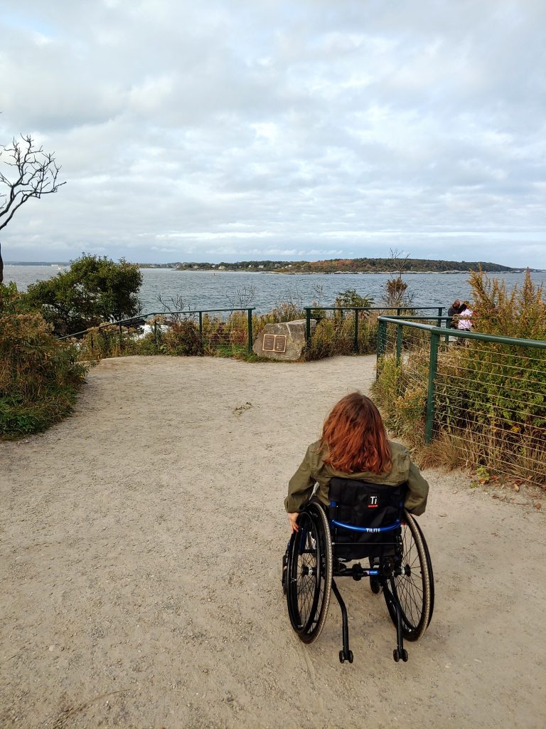 The museum was fully accessible and I had no problem rolling around and checking out the exhibits. Rolling around outside, the walkways to the museum and primary lighthouse viewing area are all paved so we had no trouble. For the other paths, which were hard-packed dirt, we used my Freewheel attachment. There were some inclines that I needed help with, but there was still plenty to see at this site even if you don’t have a traveling buddy to help.