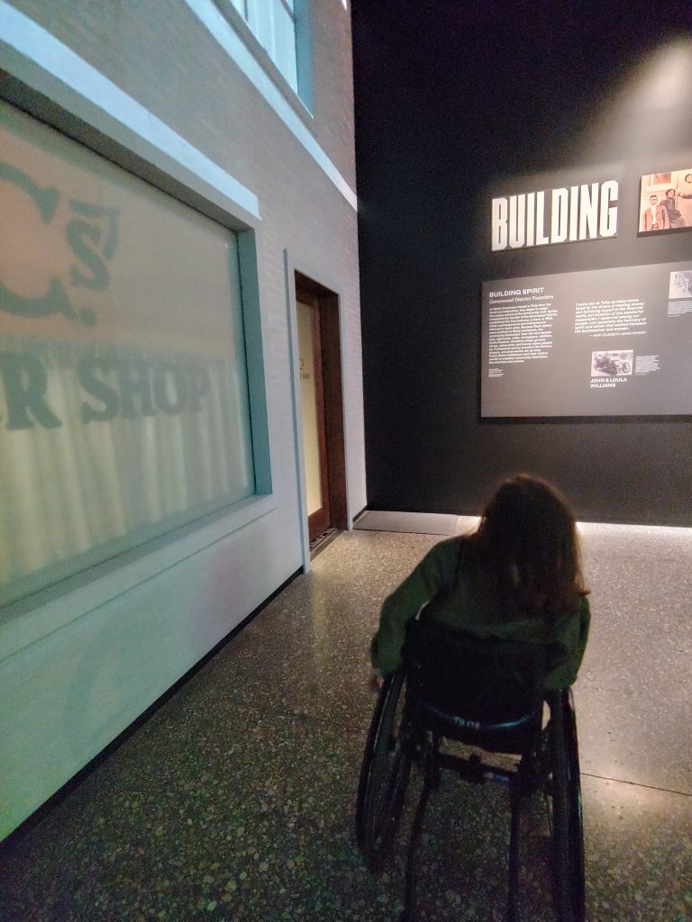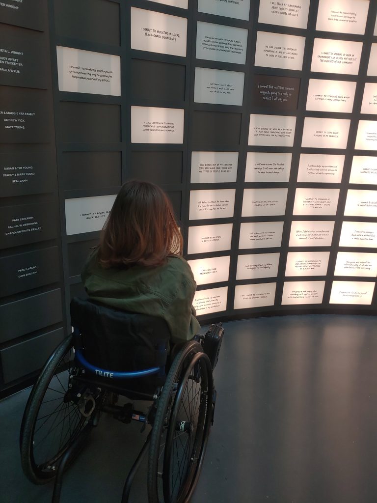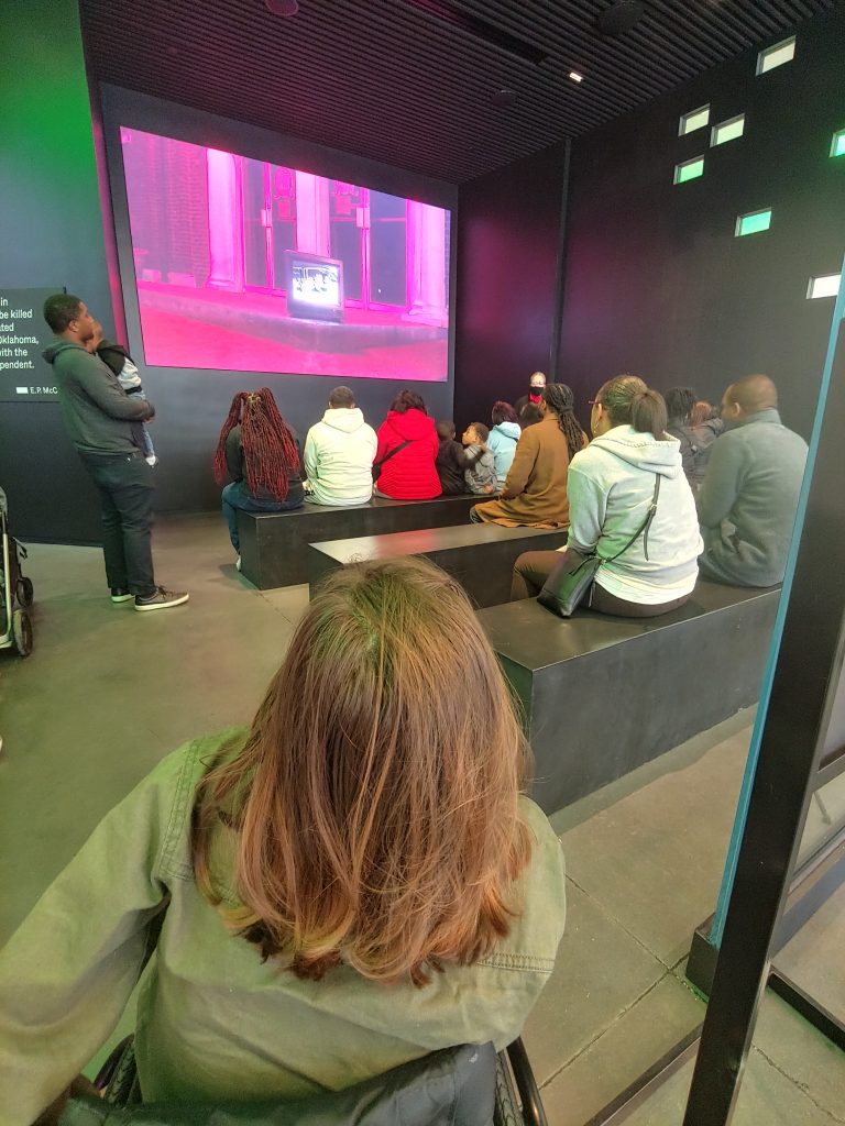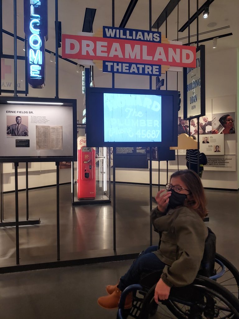 Every part of Greenwood Rising was accessible to me in my chair. Even the displays were at levels that allowed me to see the artifacts and read the history. On our first visit, we spent about 2 hours exploring, but I definitely felt like I needed more time to reflect on what I was seeing and to visit again. This is easy to do right now because tickets are free, but you do still need to reserve your spots online so they can maintain the intimacy of smaller crowds.