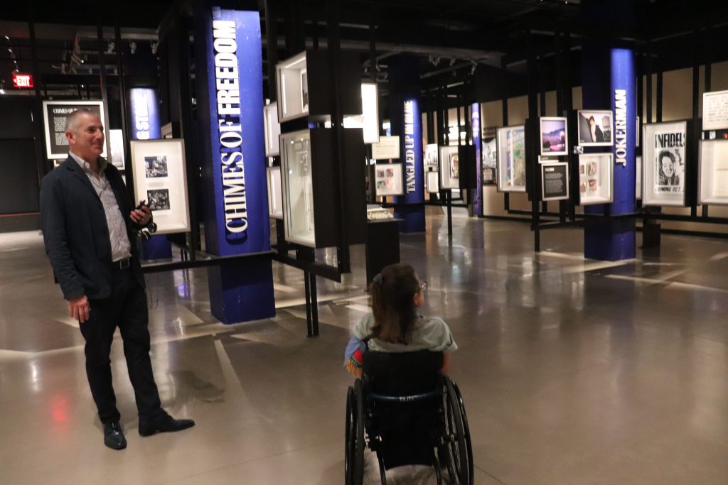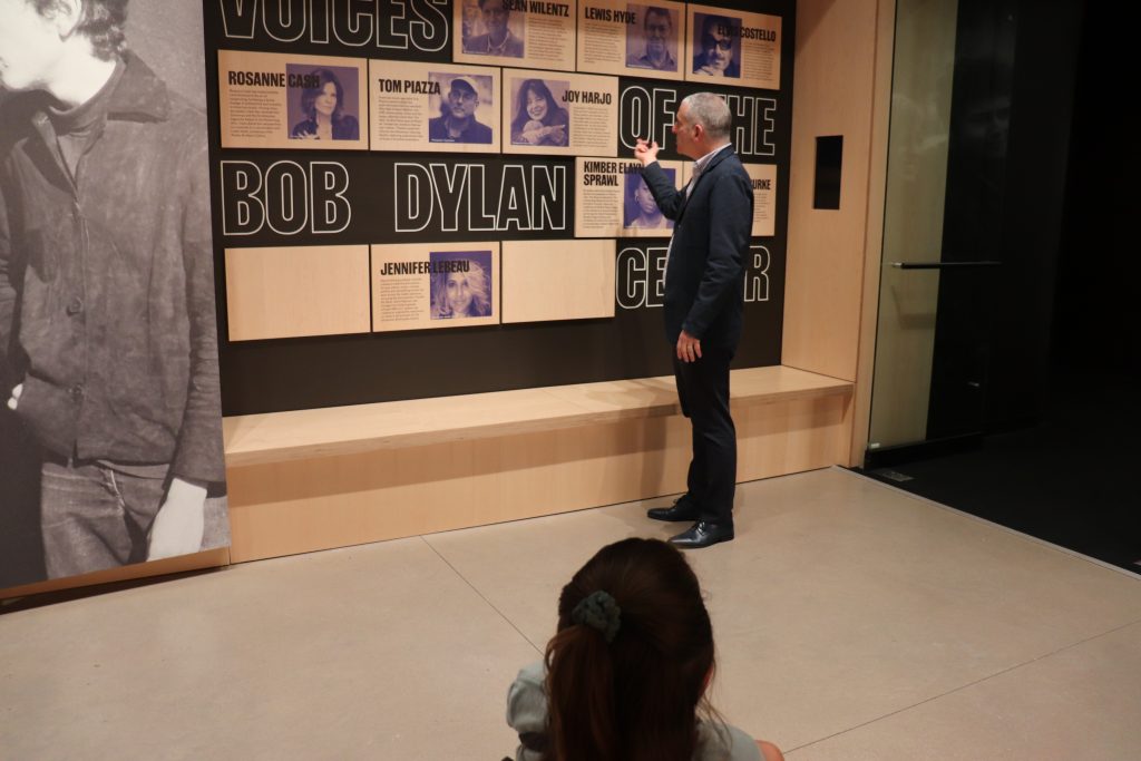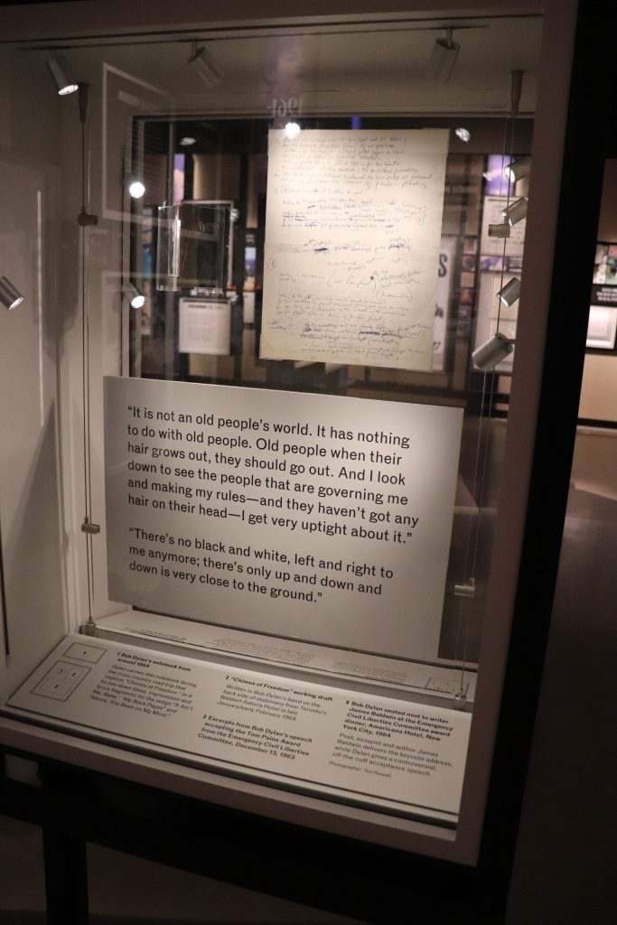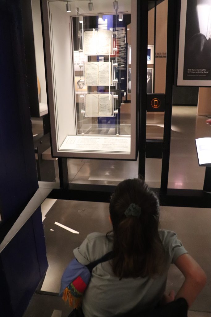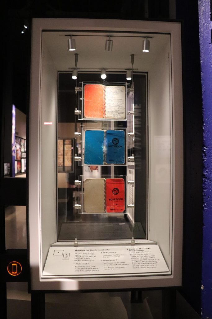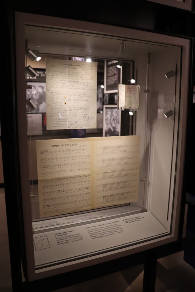 With over 600 songs written and 125 million records sold, there is plenty packed into this collection. Sheets of music, handwritten lyrics, instruments, quotes, books, art, and objects. I loved learning that, like myself, Dylan is rarely without a notebook and loves to write down his thoughts and ideas as they come to him. There is so much to take in that you will be glad there are self-guided audio tours available. I was lucky enough to have Steven Jenkins, the museum director, showing me around before they opened. As soon as we started the tour though, I knew I would need to return later in the day to explore even more on my own. The center doesn’t focus heavily on Dylan’s personal life; highlighting instead his music. The exhibits are so well designed and with all the visitors listening to the tour on their headphones, even with others around listening to many different things at once, the experience is not overwhelming.