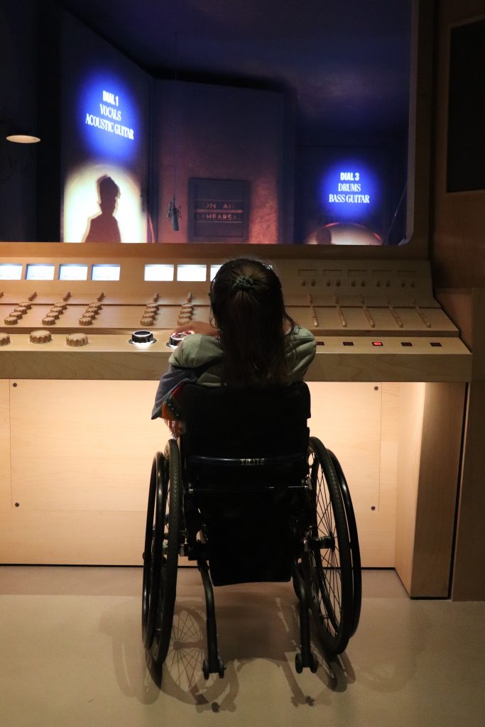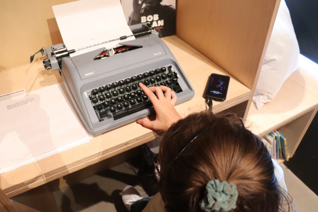 I loved spending time in a small room that resembled a recording studio. It is mostly constructed from wood and features a projected life-size silhouette of Dylan. Try your hand at some controls that change volume, and tone, plus adding or removing tracks of instruments or vocals. Other buttons share stories from Dylan and tales of his recording shenanigans. I also really enjoyed the final room we explored, a tiny space with books to read and a typewriter to create your own message to the world.