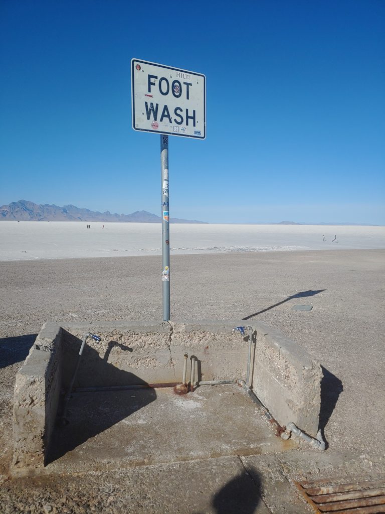 It’s a little tricky to put into your GPS, because while there are lots of locations for the “salt flats” online, you’re really just aiming for a rest stop off of I-80 in Wendover, UT. But don’t worry, it’s hard to miss! Need some extra help, try searching for “West Bound Salt Flats Rest Stop”.