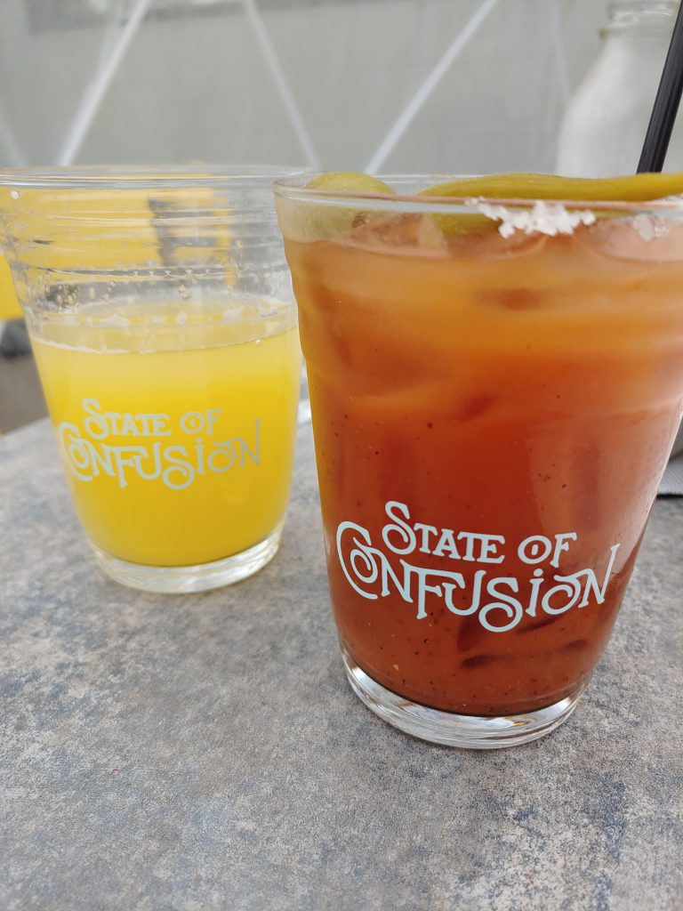 I’ve always wanted to eat in one of those vinyl igloos that restaurants and bars have. At home, outside of DC, those are always reserved way in advance and usually have a minimum purchase and a minimum number of guests. So imagine our shock when the hostess offered us one for brunch-with no wait! Our jaws dropped and we were speechless for a minute. Turns out that was just the beginning of a great brunch at State of Confusion, on Chattanooga’s Southside.