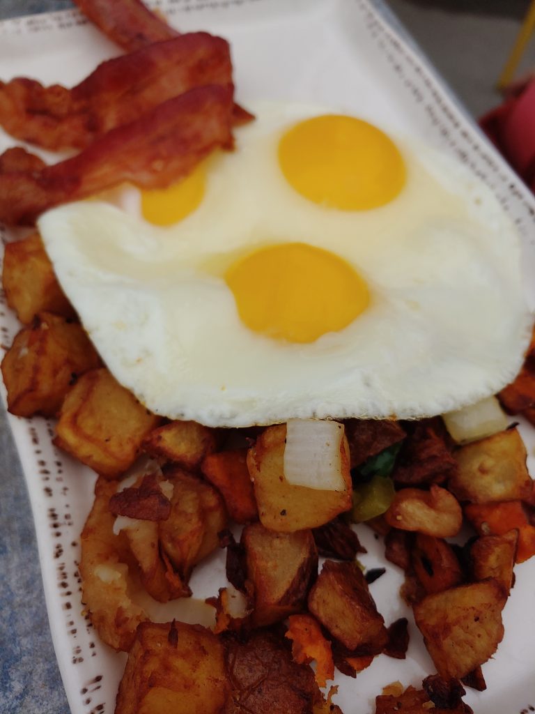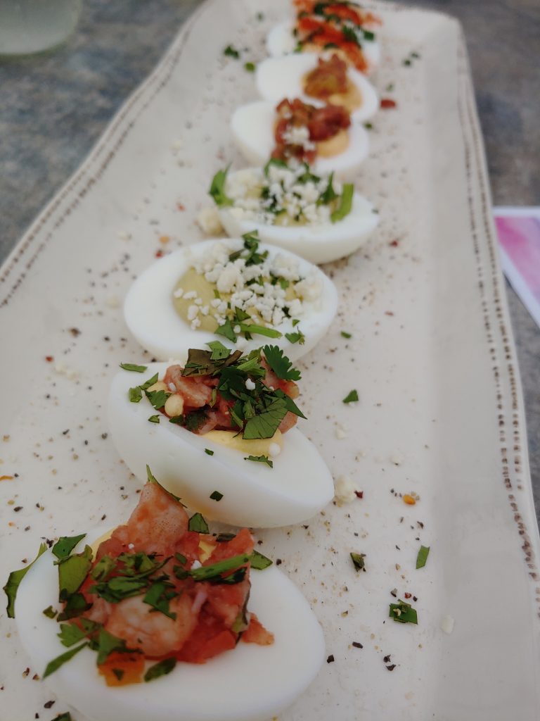 We really liked our “deviled egg flight” with 4 great tastes to try. How fun is that! Their kids brunch was perfect for me, and everything was cooked perfectly. We also enjoyed their Confusion Benedict and their Low Country Omelette… but their side dishes really won us over. Their Confusion Potatoes are a mix of regular and sweet potato hashbrowns and my mom has suggested going back just to get more of their cheesy grits.