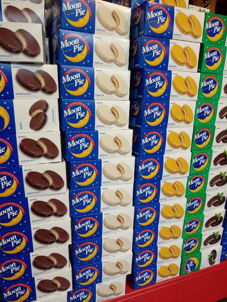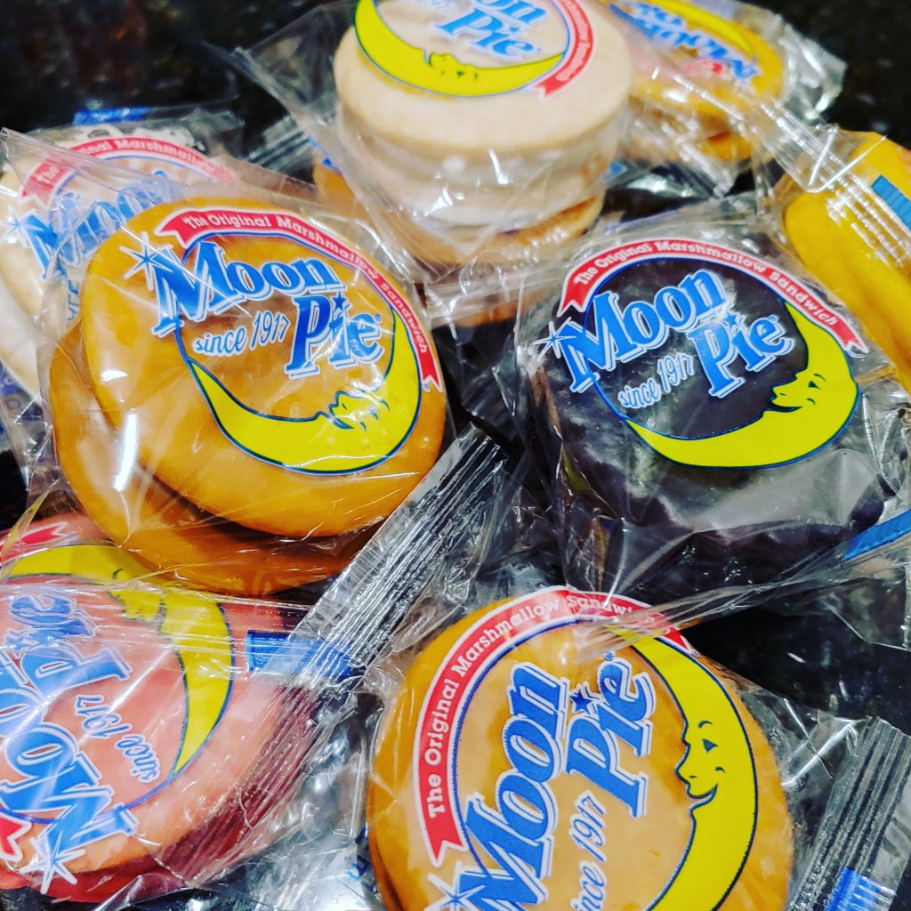 Lemon, Chocolate Mint, Salted Caramel, Banana, Strawberry, Vanilla, and Chocolate. All flavors you can try in a MoonPie! Who knew?