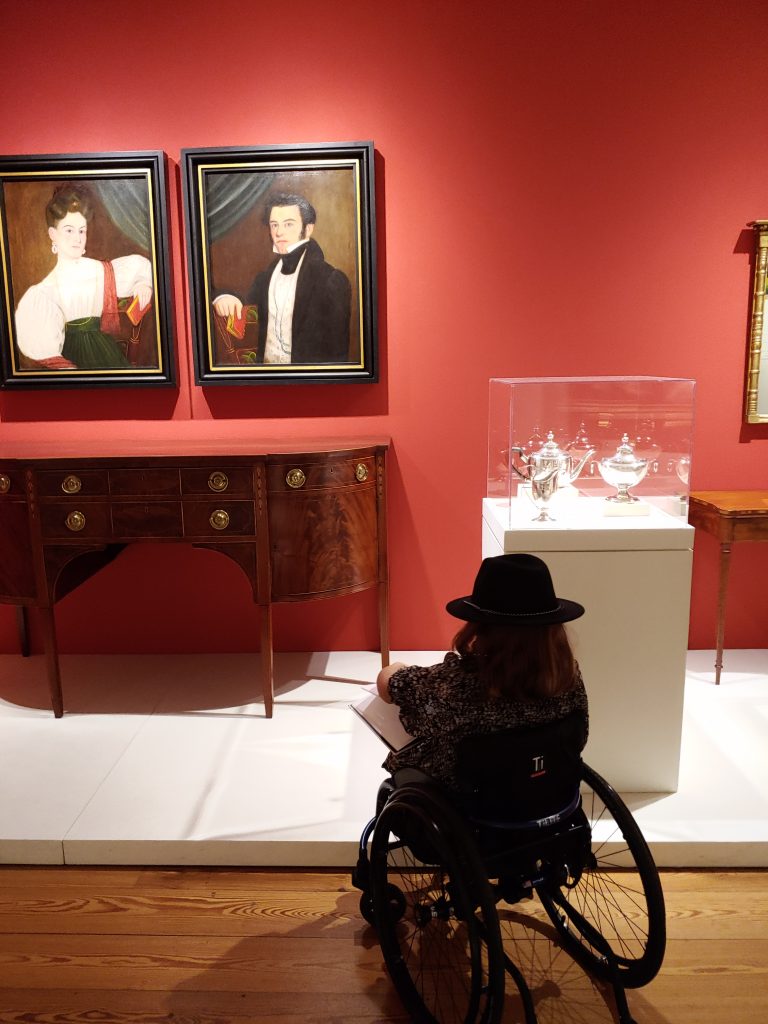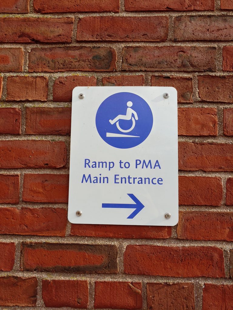 The museum is located at 7 Congress St in Portland, Maine. There is limited on-street parking but we were able to snag a 4-hour handicapped parking spot right by the entrance. If those spots are full, don’t worry, there are lots of parking garages and lots in the area. The sidewalks in the surrounding area were all smooth brick with nice curb cuts at all the intersections we saw.