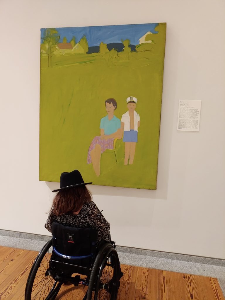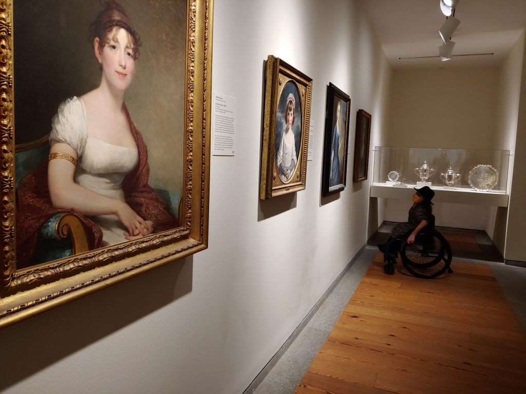 The entrance to the museum is accessible with a long ramp built into the facade. There were several signs directing you to where the ramp started. The only downside was that the exterior door itself didn’t have a power button. At least not one that we could find! However, the guard stand is right inside the door and they quickly came to assist.