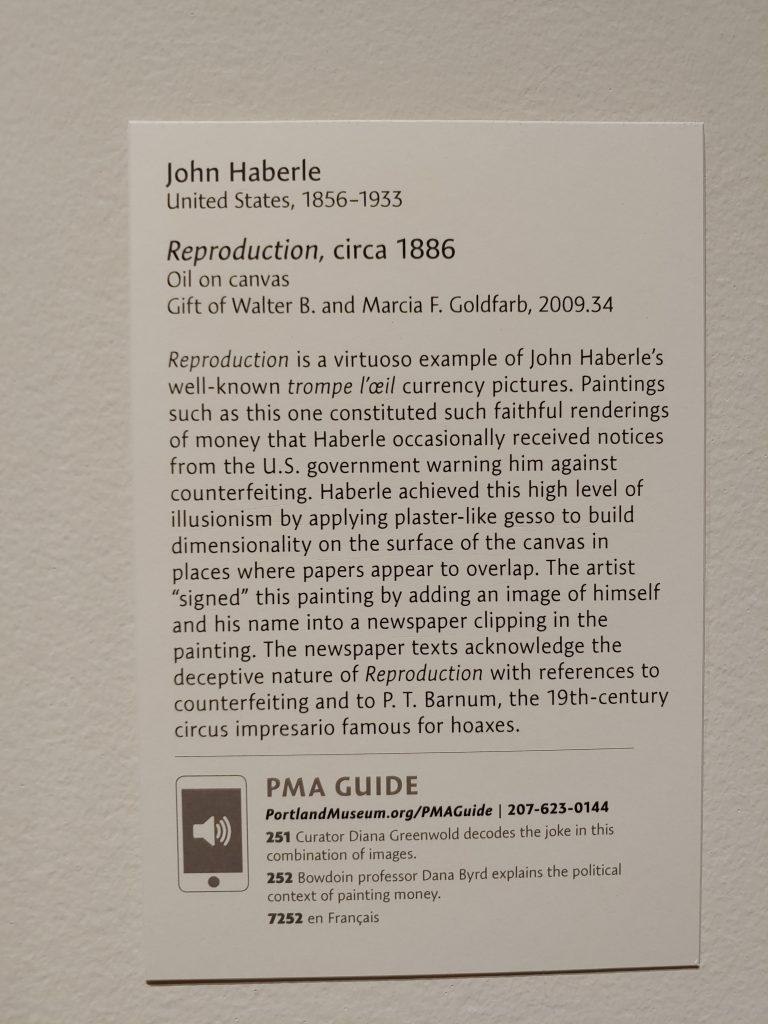 While we were there, they had three temporary exhibits as well as their permanent collection. Within the permanent collection, there were works by Cassat, Degas, Renoir, and quite a few by Winslow Homer. In fact, the museum also owns the studio space that Homer used while creating his Maine coastal landscapes and in non-pandemic times they offer bus tours to visit the property, which otherwise can’t be seen by the public.