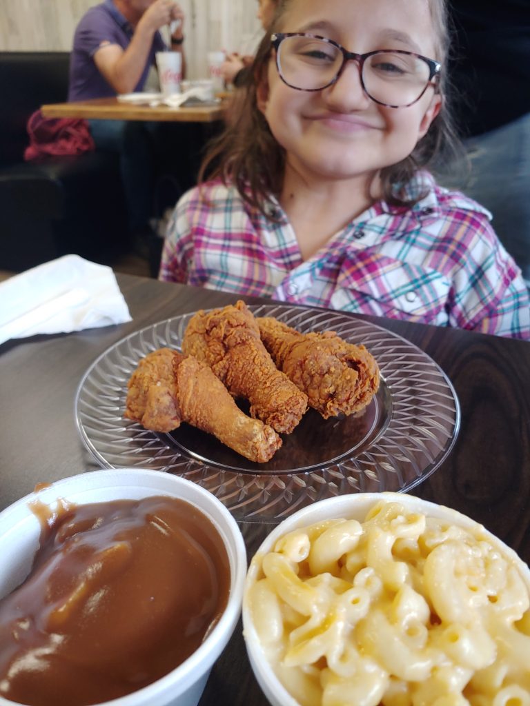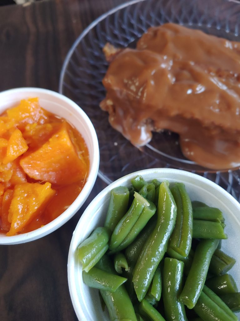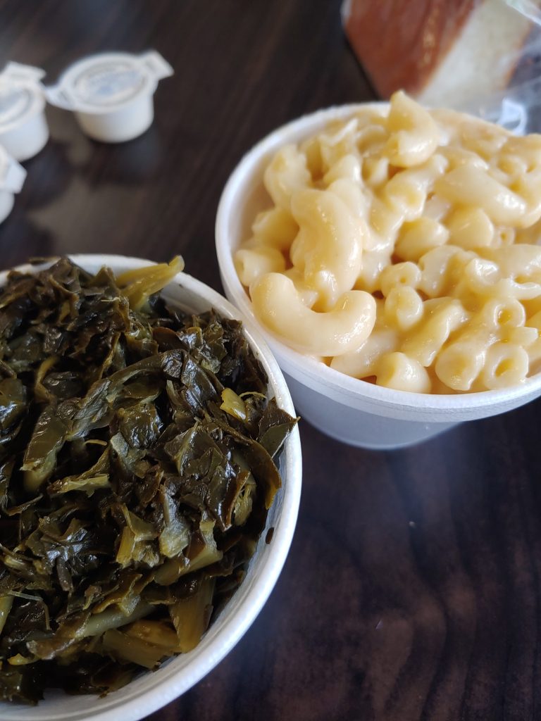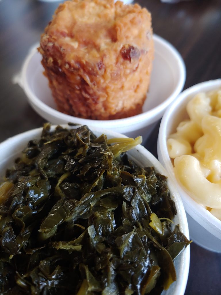 Seriously, everything we tried was amazing! We were shocked that they let you pick exactly the chicken pieces we wanted, which is great if you have picky eaters in your group. We enjoyed their mac and cheese, mashed potatoes with gravy, fried corn, greens, yams, cornbread, and rolls… which were all perfect side dishes to our fried chicken and meatloaf.