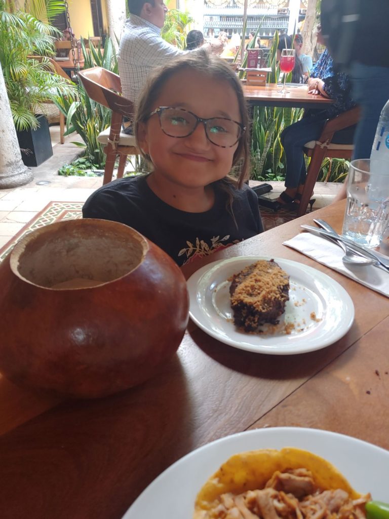 The museum admission and Conchinita Pibil experience is free. It is not required, or even necessarily expected, that you stay for a meal in the restaurant, but if you don’t, will be missing out on the best Yucatan specialty meal we had in Merida. The service was top-level. There is live music on Friday and Saturday evenings. My family was very impressed by the unique craft cocktails and wished they could try each one. I enjoyed the MUGY special beans, which are refried beans topped with longaniza sausage and pork rinds, while my family enjoyed the Conchinita Pibil two ways, both on tacos and a sandwich. We loved it all!