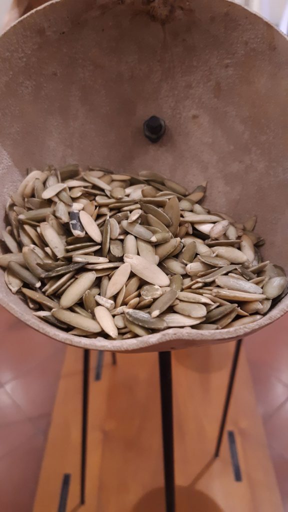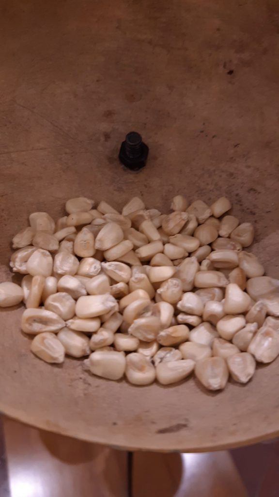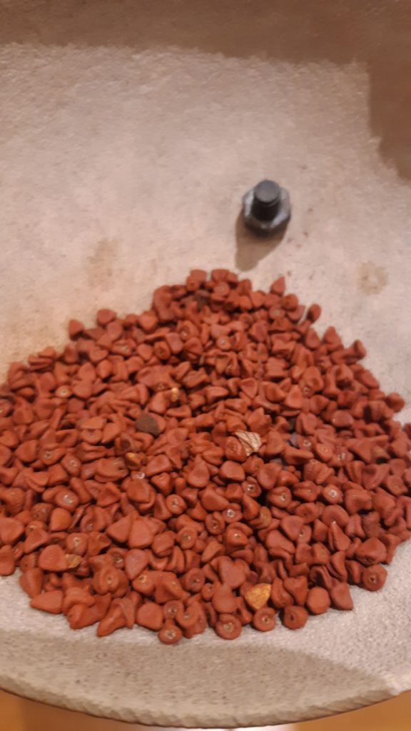 Conchinita Pibil is slow-roasted seasoned pork and each afternoon at 2:30, you will watch the actual pig being lifted from the pit in the ground that is lined with banana leaves. My family wasn’t sure I would be up to seeing this part, but it was fascinating. The Museum staff had guests form a line and they handed out serving-size cups for us. Throughout the day you can observe tortillas being made and marinades being prepared. We waited as the men lifted the pig and portioned out generous samples into our cups. We then scattered across the courtyard village to enjoy our samples before heading inside to request a dinner table.