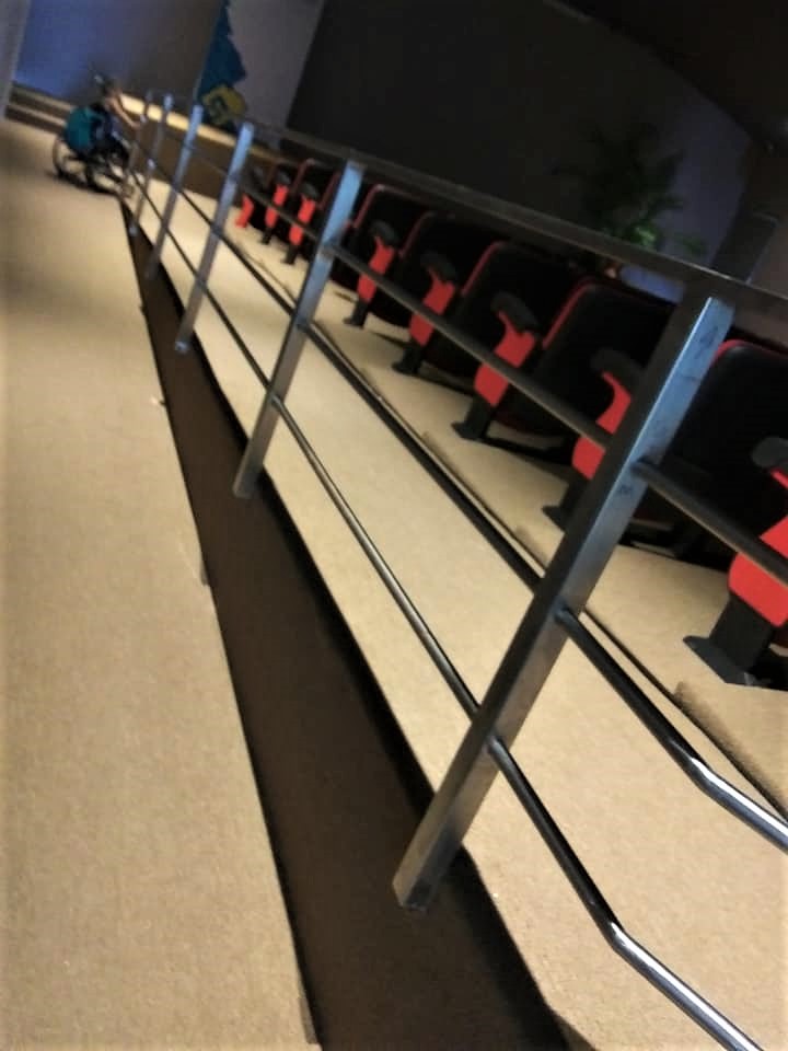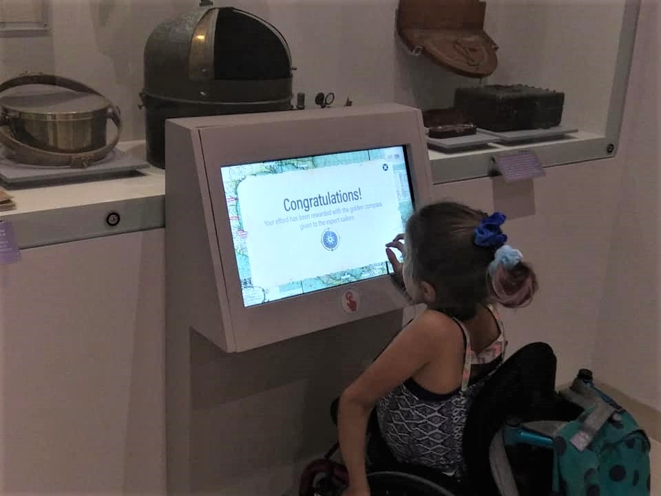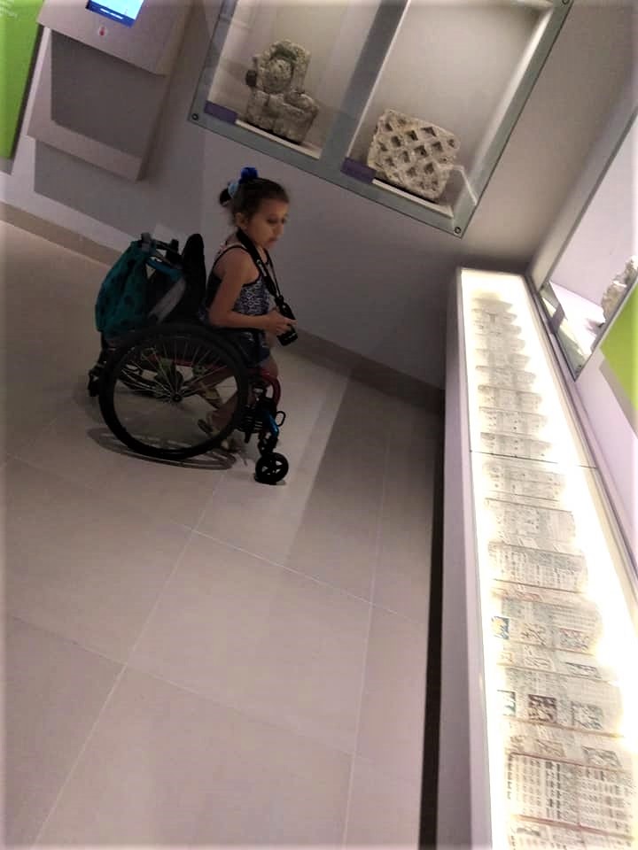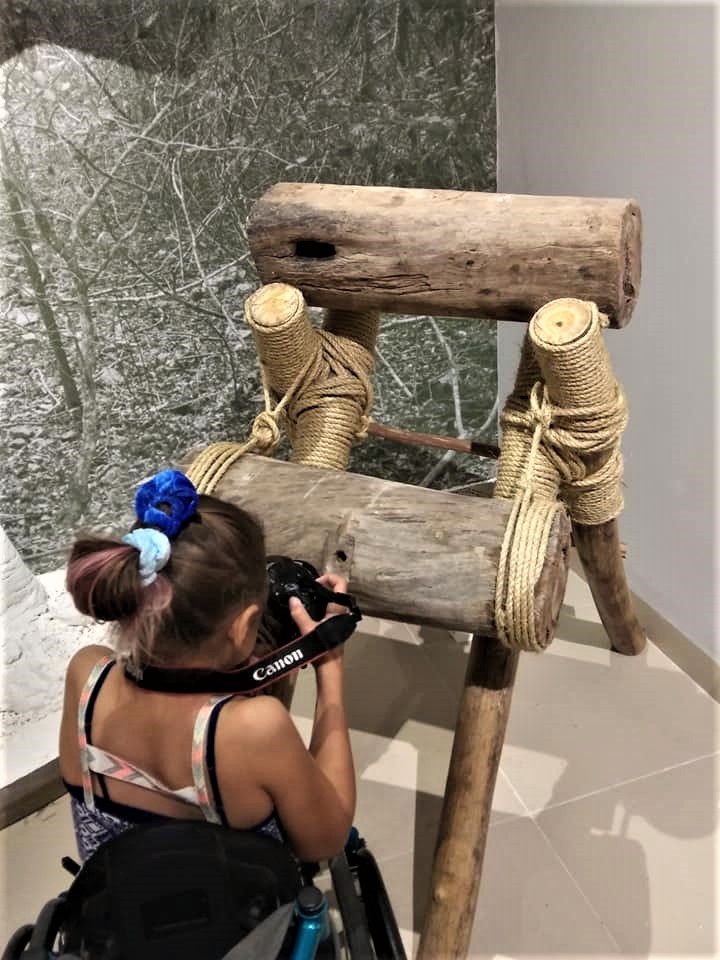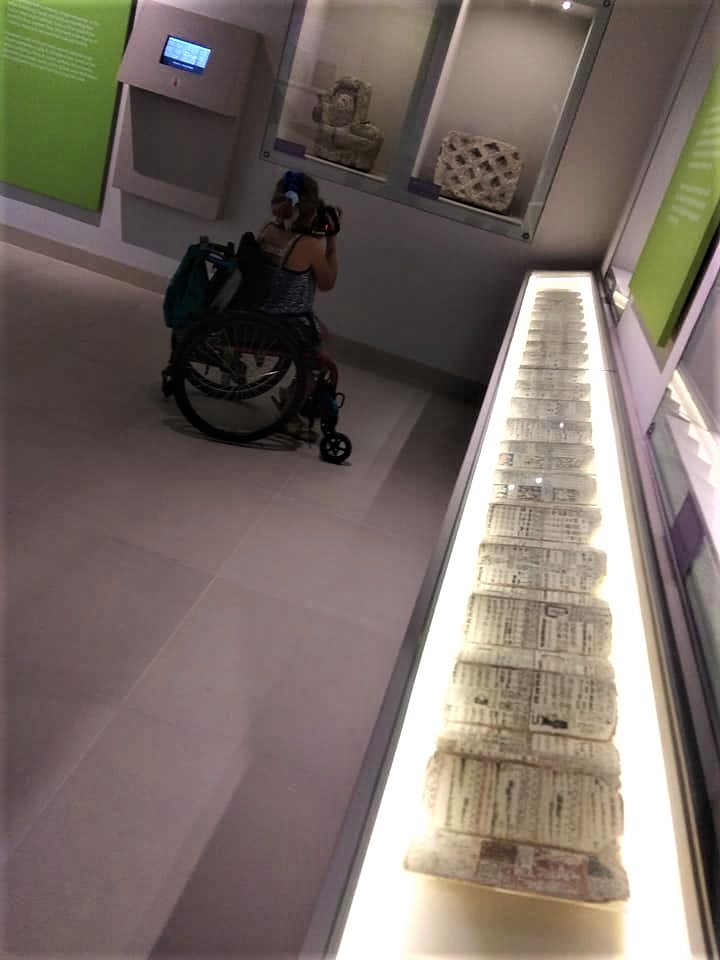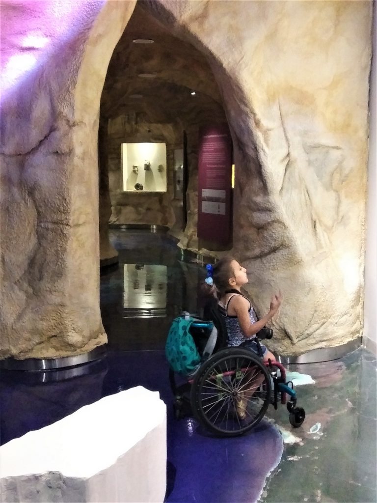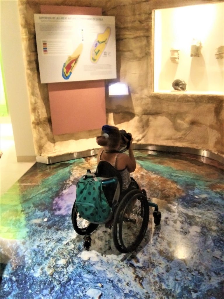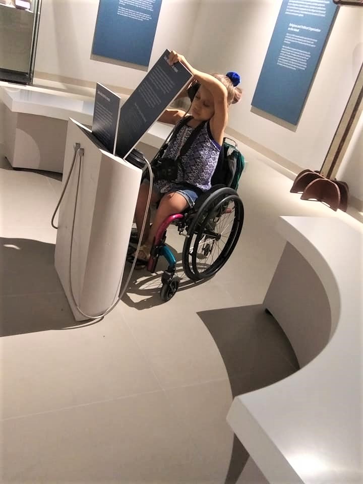 This museum is wonderful to visit as a wheelchair user. There is a gradual ramp just to the right of the staircase entrance and while most of the traditional museum is on the first floor, there is an elevator for disabled access to the second floor Carnaval exhibit, restaurant, theater, restrooms, and art galleries. While the general restrooms have a raised floor entrance, there is a flat, barrier-free restroom for wheelchair use as well. Everything has enough space to accommodate any sort of chair.
