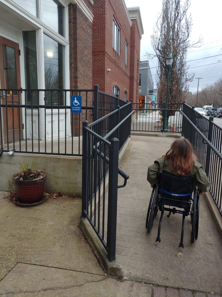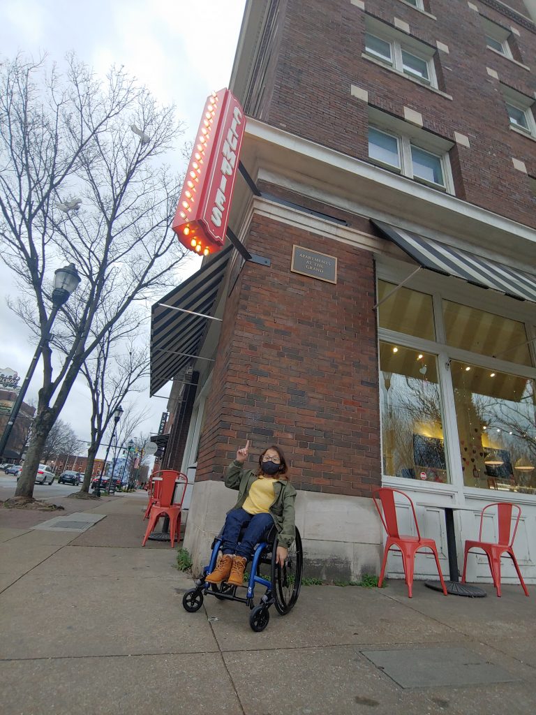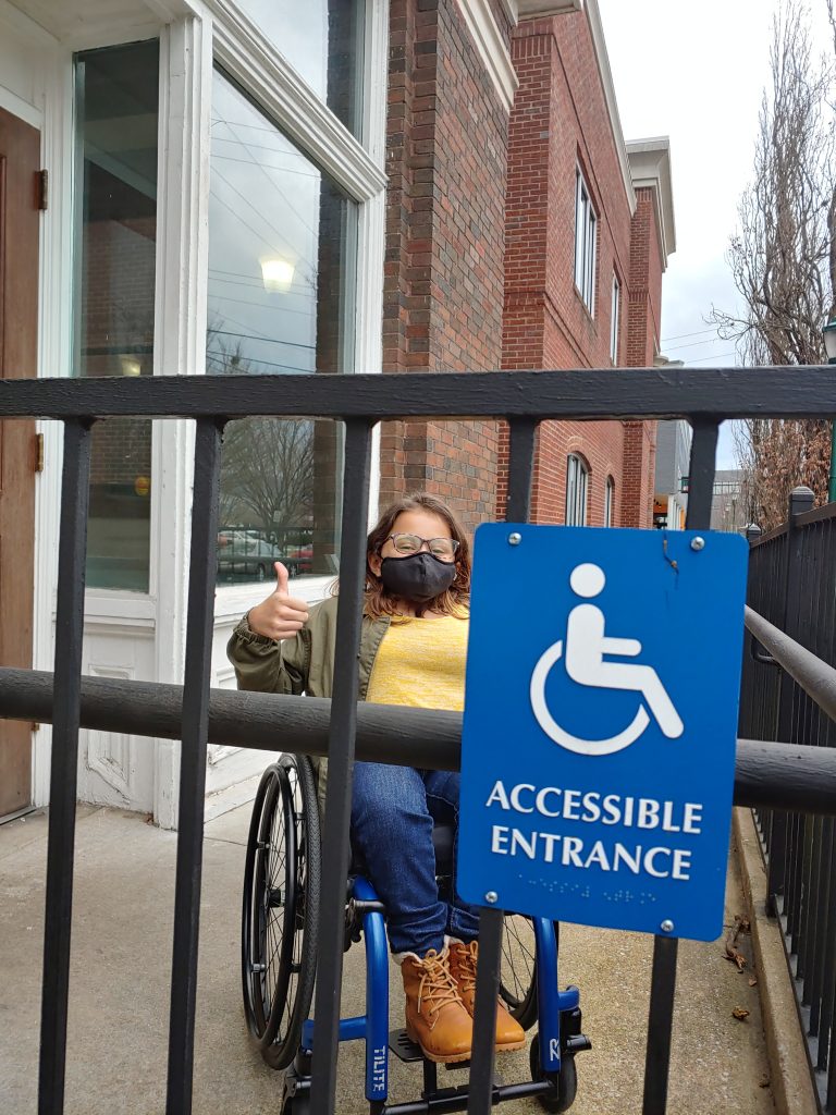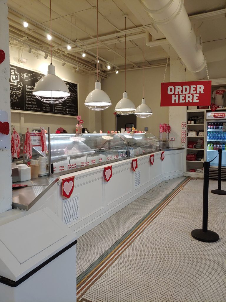 I visited the location across the street from the Chattanooga Choo Choo. At first glance, it might not seem wheelchair accessible, but they are. Follow the posted sign, down the side of the building, to a rear/side door that has a ramp. Inside you’ll follow a long hallway back to the front of the building and enter Clumpies through a side door.