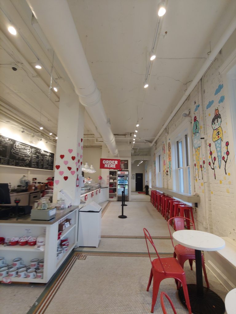 The shop has plenty of space to maneuver and some cool graphic art on the walls. Just ask for a taste if you want to test out a new flavor. Then you’ve got to let me know your favorite so I can try it next time!