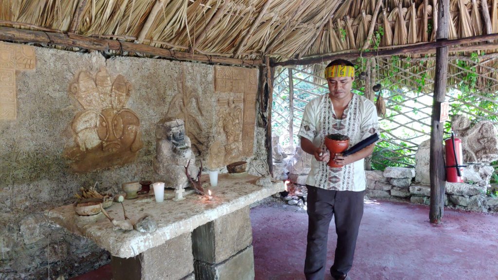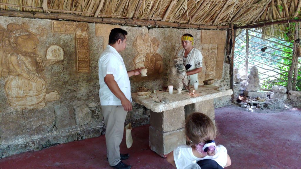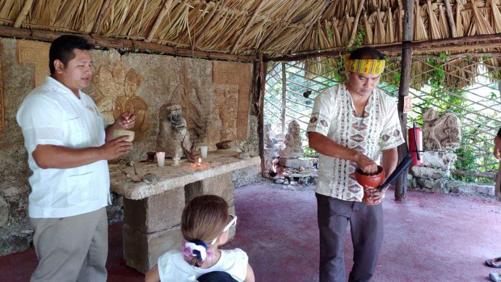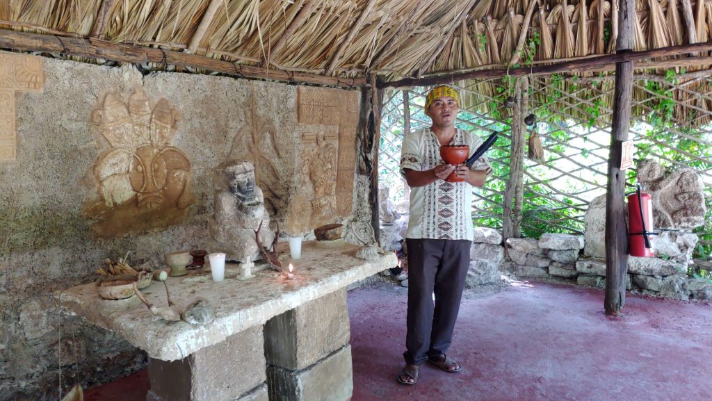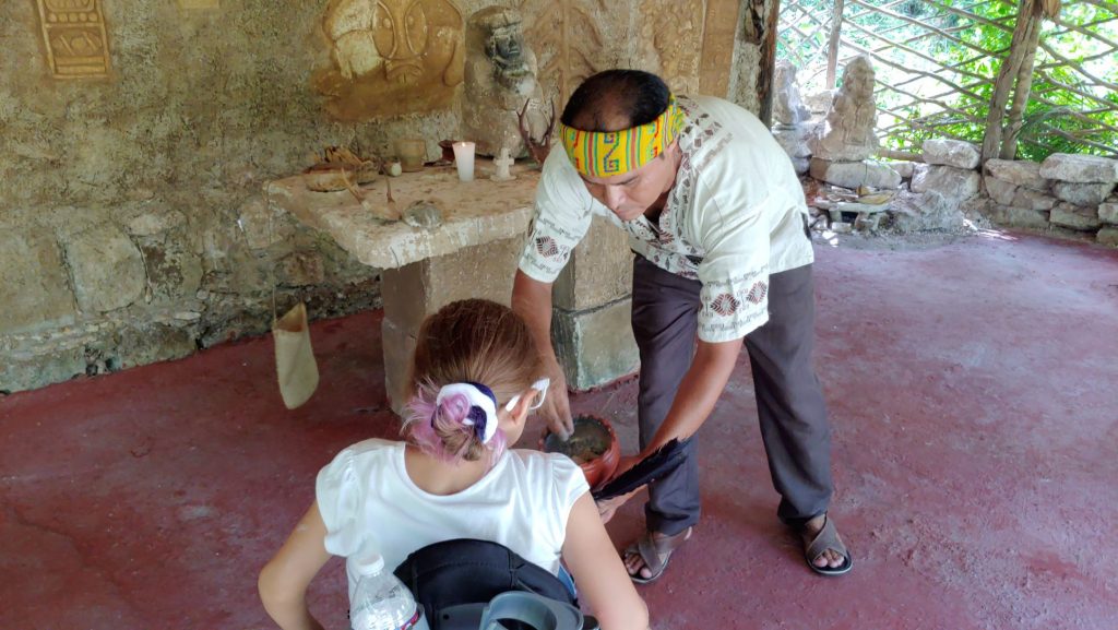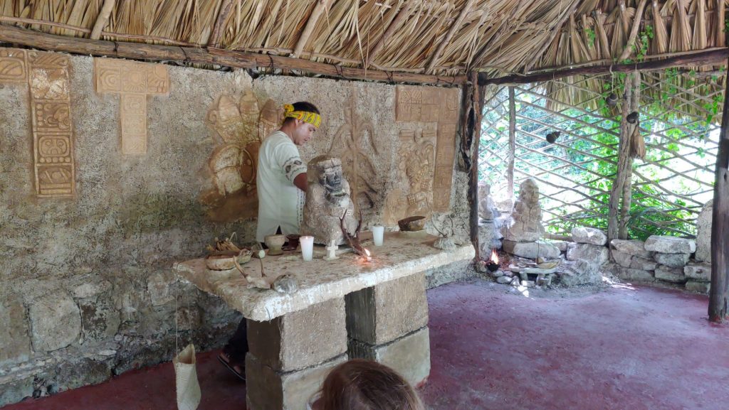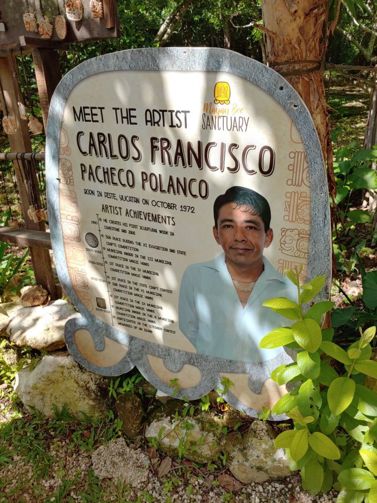 Our tour began with a Mayan blessing ceremony involving the smoke from burning copal resin.  The trail was lined with limestone sculptures made by a local artist and passed by a small cenote. These sacred Mayan bees build their hives in hollow trees. While the honey is certainly tasty, in Mayan culture it also has a wide range of health benefits. From stimulating the immune system to treating wounds, stings, or bites to treating eye diseases like cataracts. There was a honey-tasting station towards the end of the trail. Our guide explained how to taste and evaluate the samples of different varieties of honey. A little like a wine tasting would be. A gift shop finished the experience and we purchased some medicinal honey to take with us.