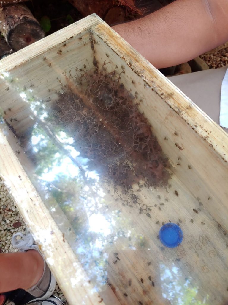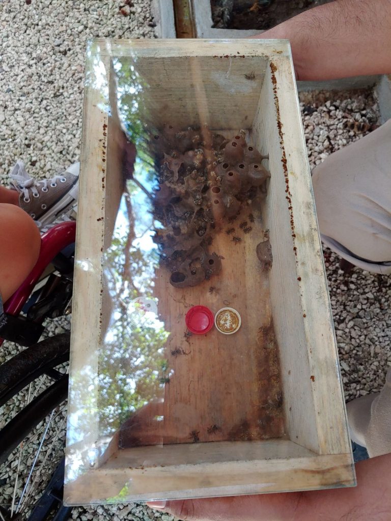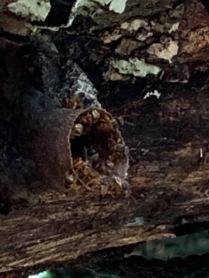 • Bee serving as guard to the hive at Mayan Bee Sanctuary in Cozumel.