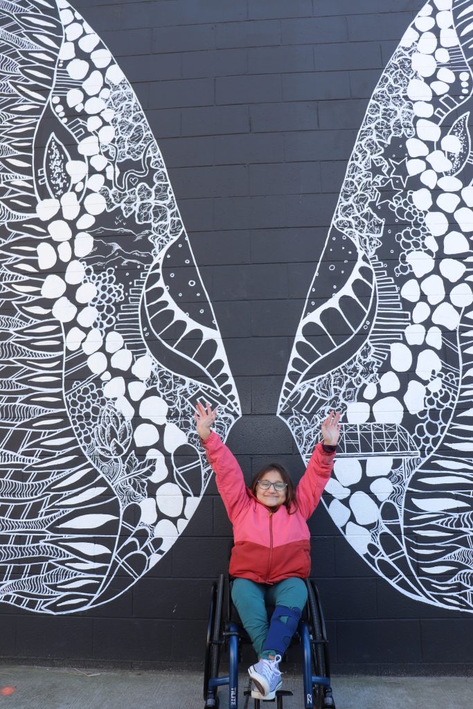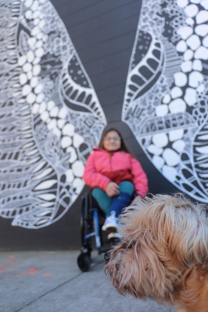 I loved finding these wings while rolling around Southside Chattanooga. Created by artist Kelsey Montague, they include fun connections to the city, including the Walnut Street Pedestrian Bridge. So cool! Scroll right for a special appearance by Alpha, the photo-bombing wonder dog.