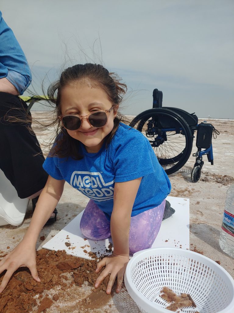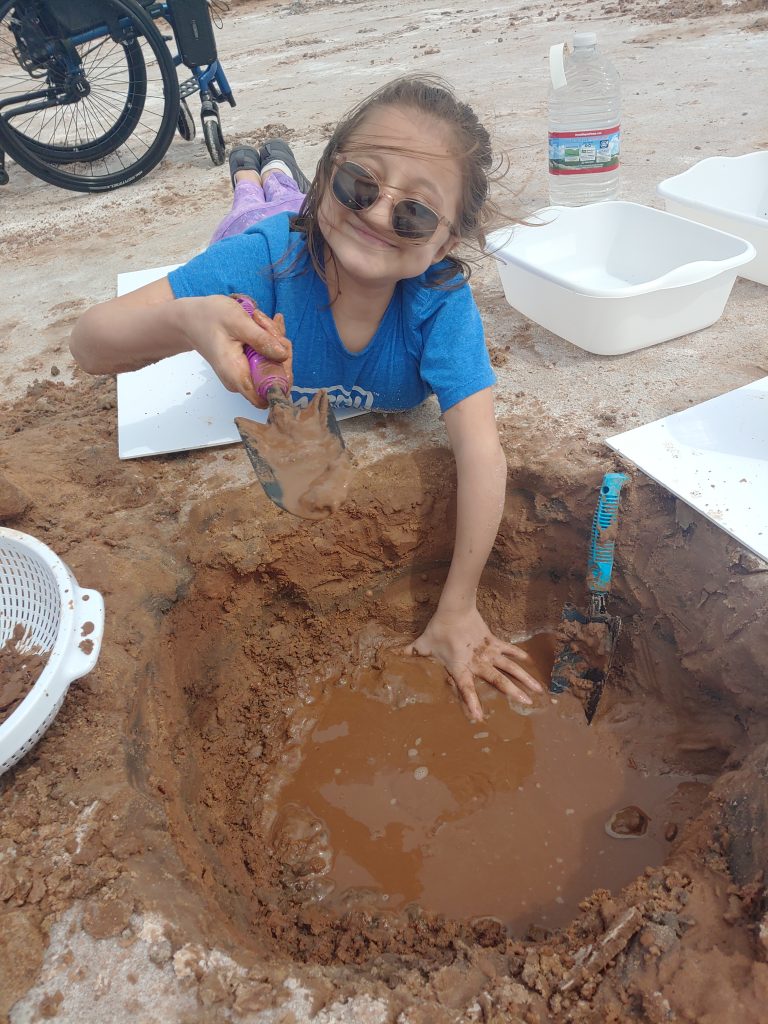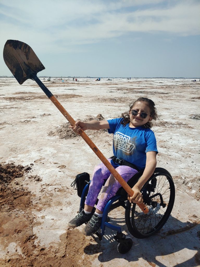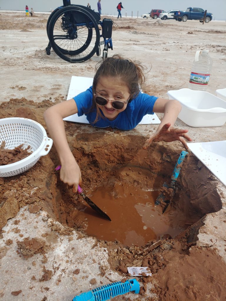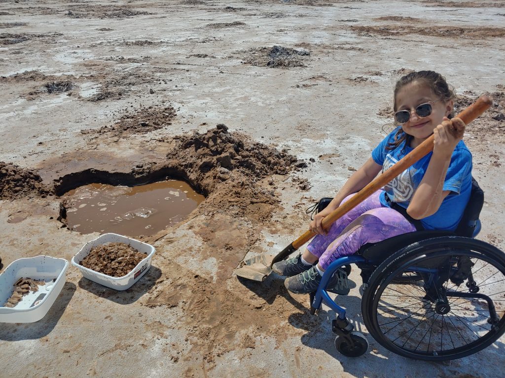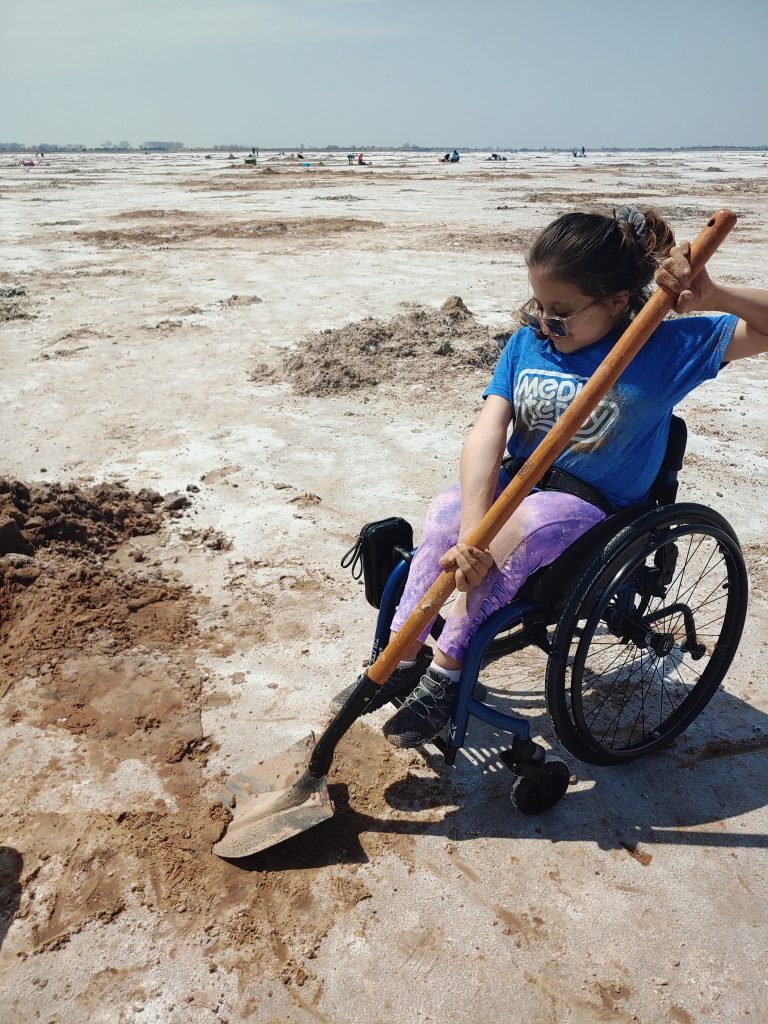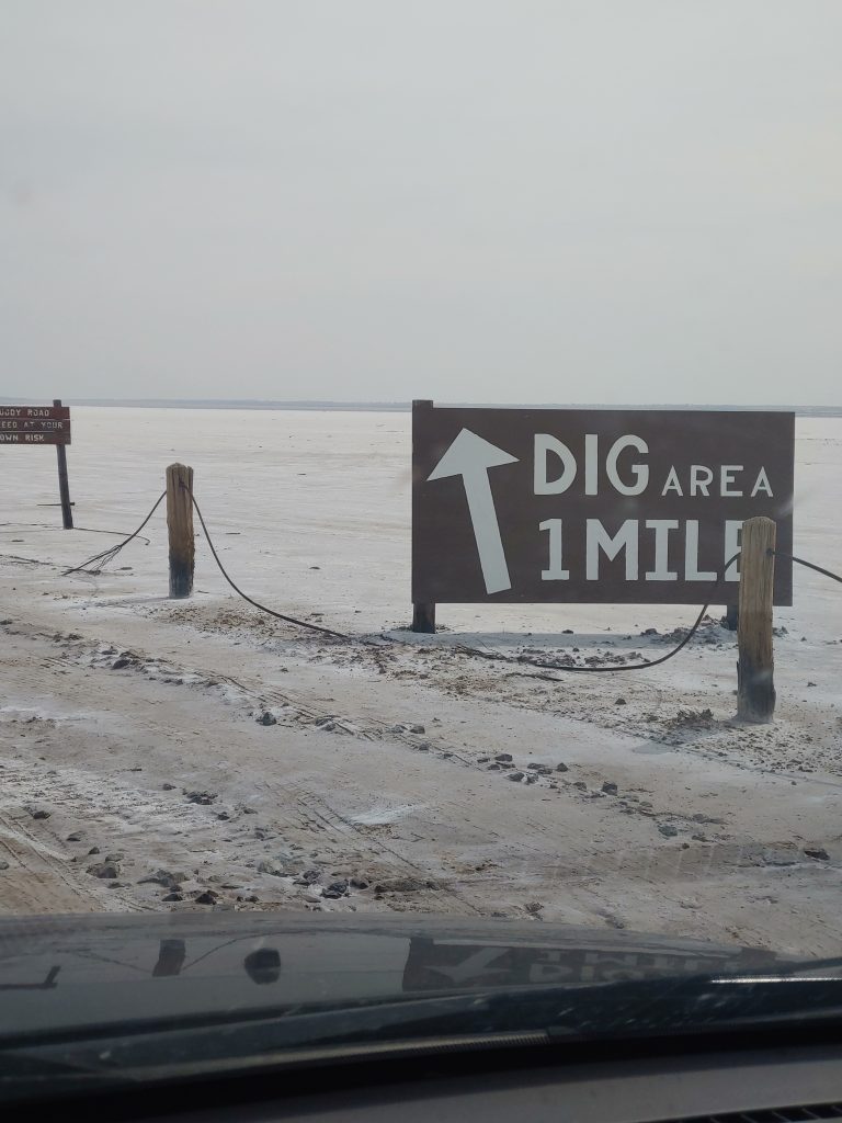 We didn’t know exactly what we would find when we arrived at the park, but the experience was shockingly very wheelchair-friendly. The parking area is just a few feet away from the actual dig sites, and while you could roll out further across the hard-packed, smooth salt flats if you wanted… we found tons of crystals when we started digging just a few feet from the dig site border.