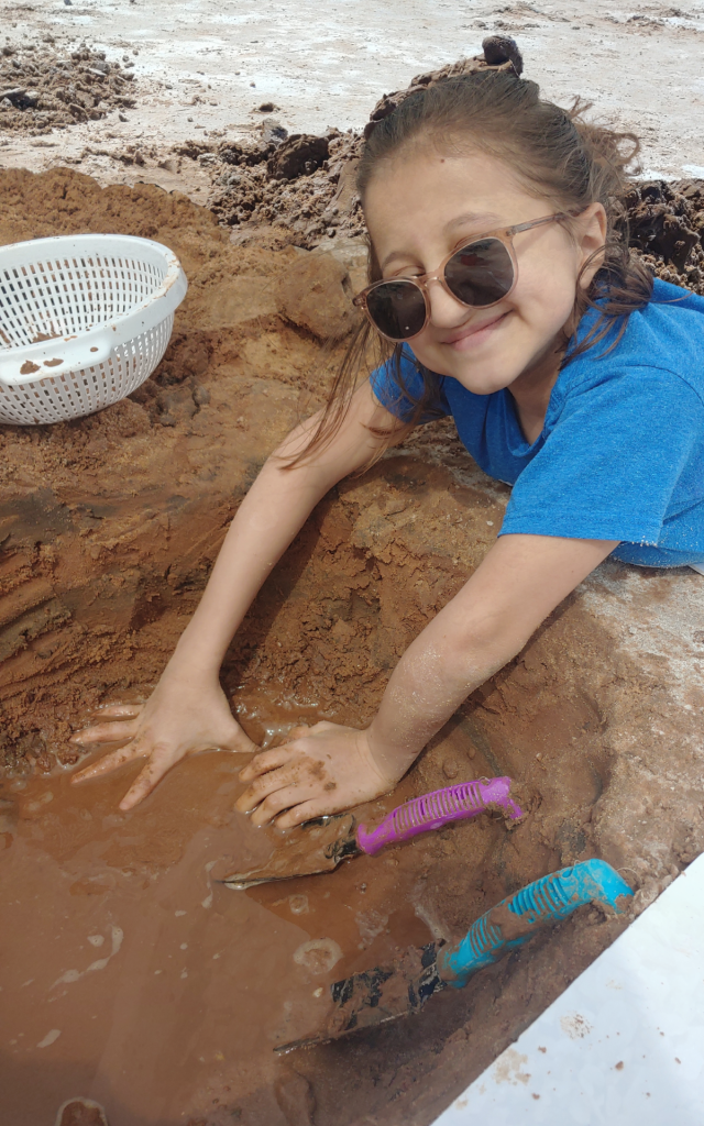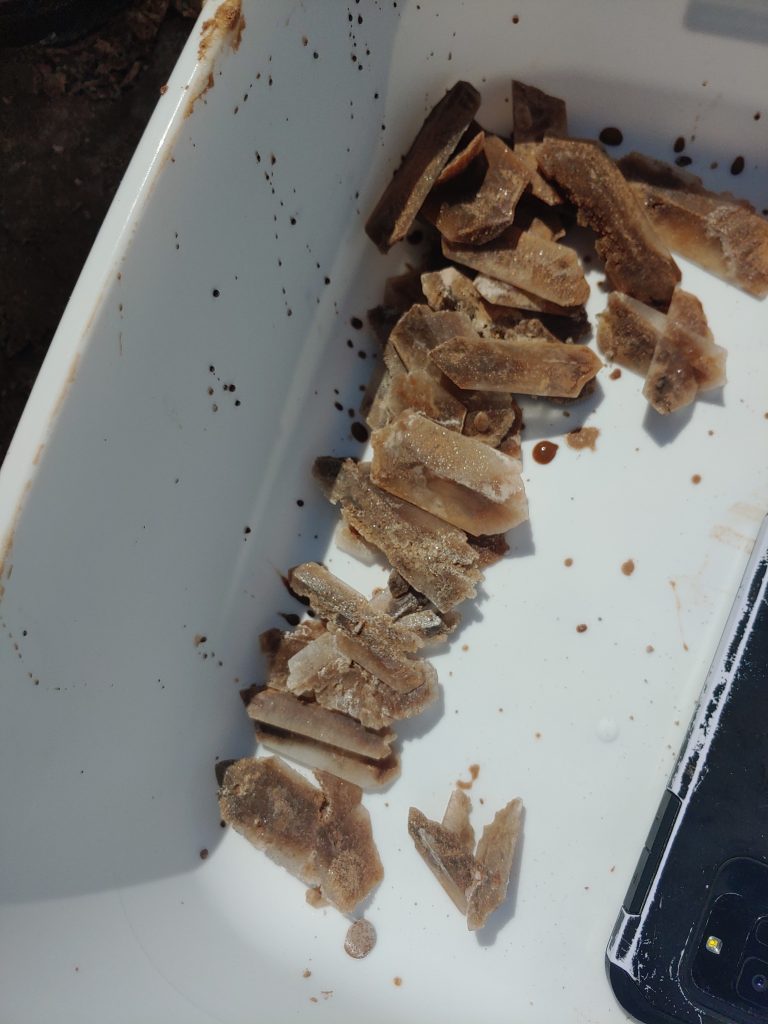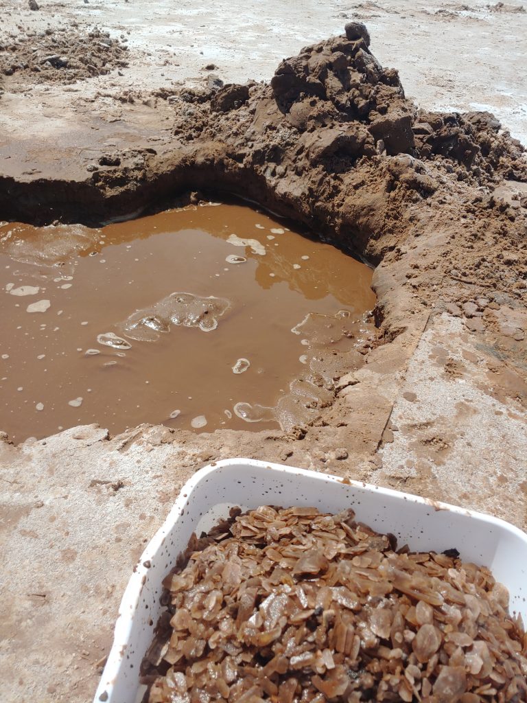 Be prepared to get messy. Your first step is to dig a deep hole in the ground. Then you slowly pour water down the sides of the hole to reveal the layers of salt, sand, dirt, and crystals! These crystals are very delicate, so if I went back I wouldn’t swirl them around together as much as I did. Instead, I would rinse the dirt off of each one individually to help them stay nice and shiny. We only had to dig for a couple of minutes before we found our first crystal, and from there we collected literally hundreds of crystals ranging in size from 1/2″ up to 3″. I found it easiest to lay on my stomach so I could reach the water at the bottom of the pit, to scoop and rinse the walls, revealing more crystals. This was a one-of-a-kind experience that I can’t wait to do again!