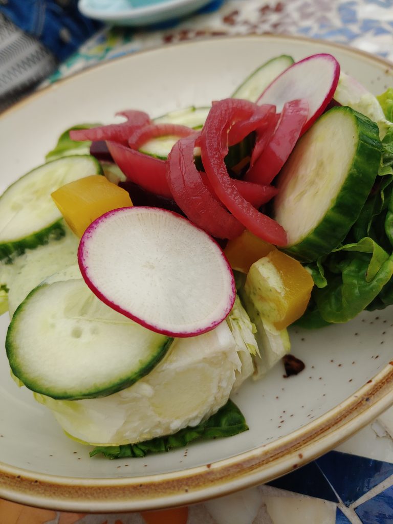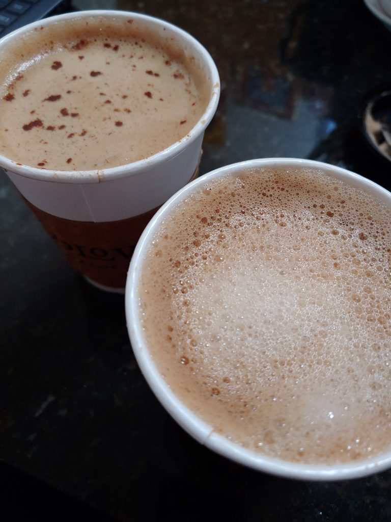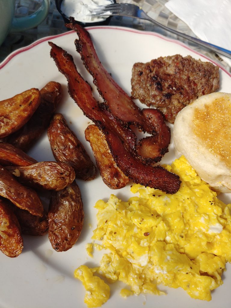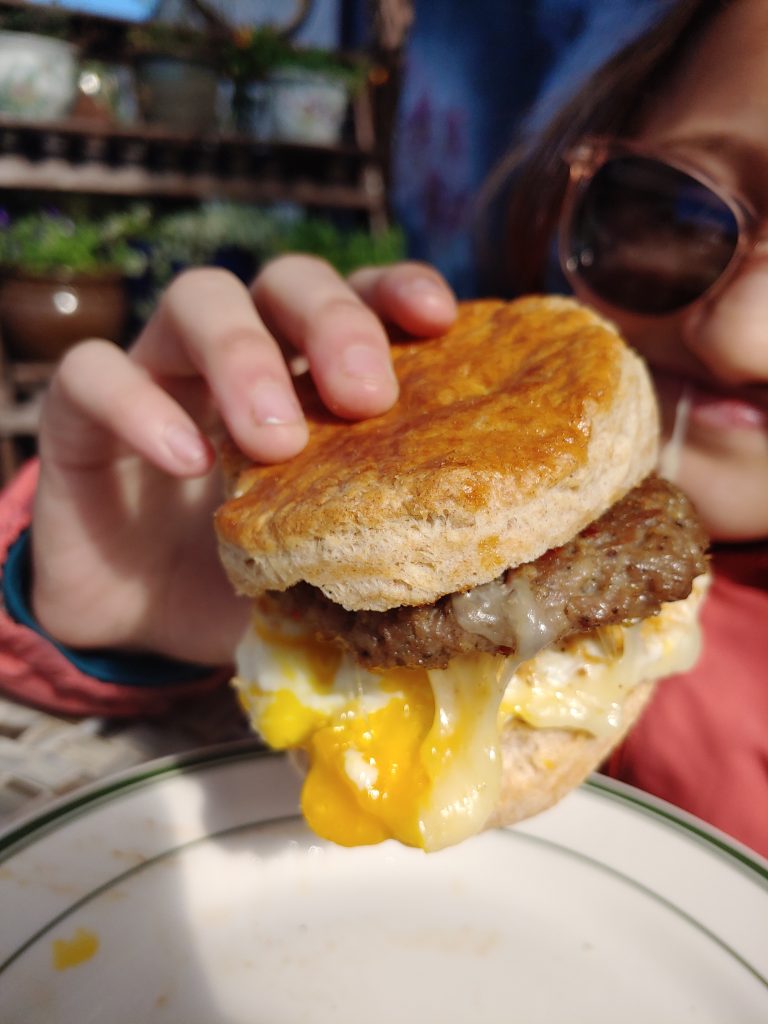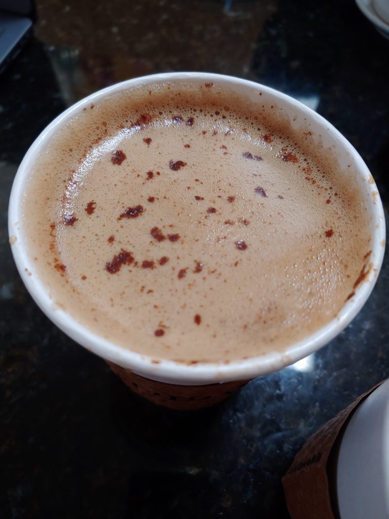 I really love how accessible they are, including their outdoor patio which has a large fire pit in the middle. They have a small, free parking lot for customers on the side of the building, with a dedicated placard spot! From there it’s easy and flat to roll right from the sidewalk, to inside, to counter, to tables inside, or out to the patio. A total win!